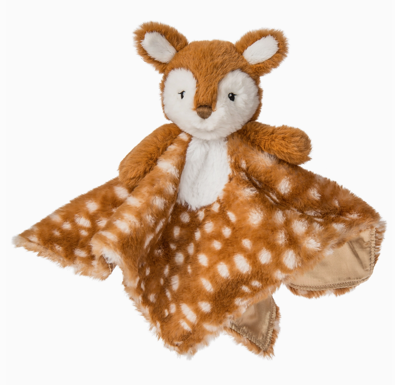 Spots that are never outgrown. Popular Fawn designs in super soft plush. Amber Fawn Character blanket. Part soothing blanket, part soft toy, our character blankets are gift giver favorites. 13 x 13 “ square blankets with character heads in the center. Satin lining appeals to the baby's senses.