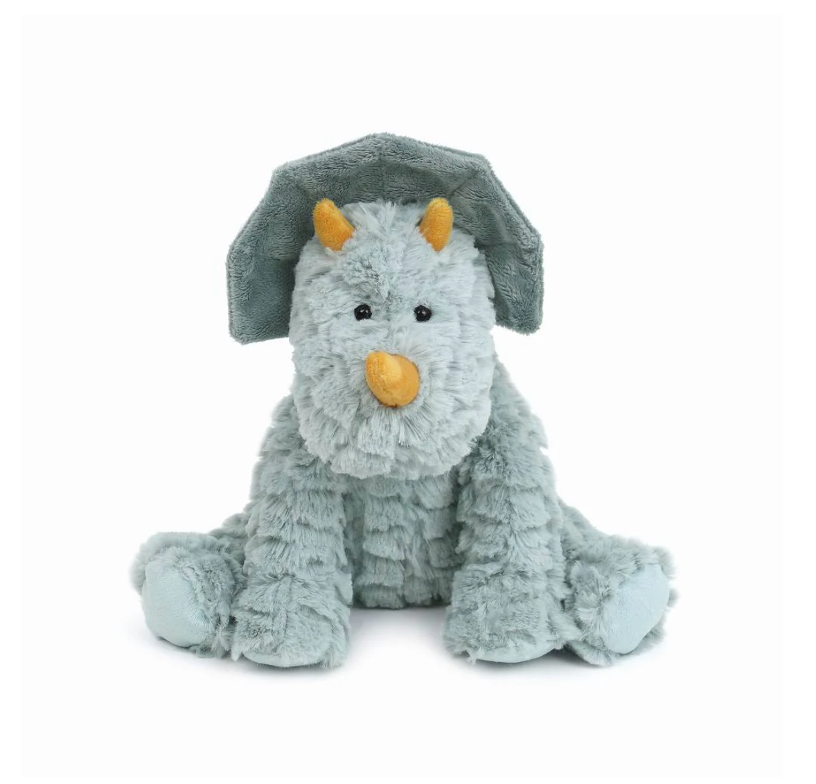 Bashful Dino makes hearts saur! The ultimate shy guy, Mon Ami¡¯s dinosaur plush toy takes cuddling to the next level with his sweet demeanor and super soft periwinkle blue fur. Our dinosaur stuffed animal sports a squishy plate, horns and nose for extra tactile stimulation that keeps little fingers entertained. And of course, this dinosaur plush toy is stuffed with plenty of fluff, ensuring he effortlessly transitions from playtime to naptime. Make a little one roar with delight by gifting our ferociously adorable dinosaur stuffed animal.