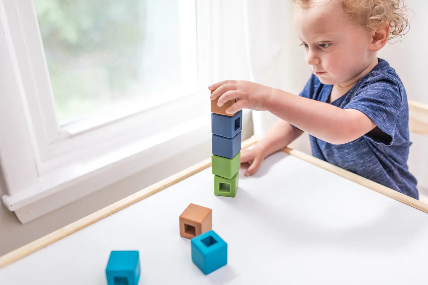 These mountain silicone blocks are beautiful and are the best compromise between natural and colorful, hard and soft, traditional and creative. The silicone blocks are made of food grade silicone safe for little ones. Thoughtfully designed with windows for fun building and easy grasping in bright colors to help keep babies attention. The silicone blocks are sturdy and stand up just as well as the wooden ones.