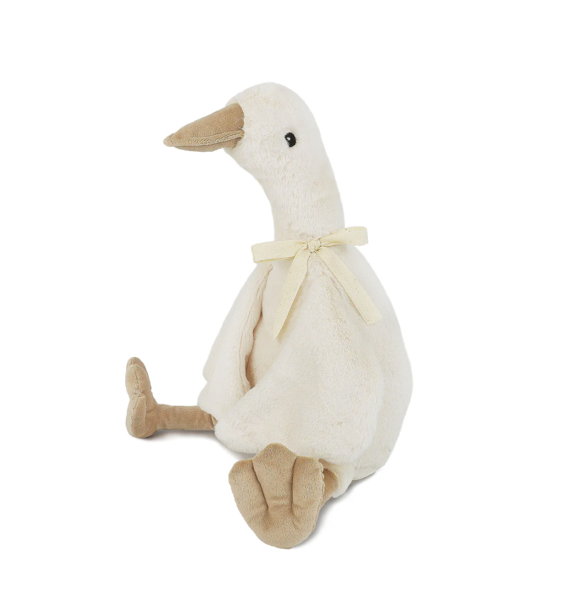 Meet Pru the stuffed goose. Super cuddly in a beautiful cream fur and twill natural tie at her neck. Plopped in the playpen or situated on a shelf in the nursery, this charming hen stuffed animal brings endless smiles and hours of amusement.