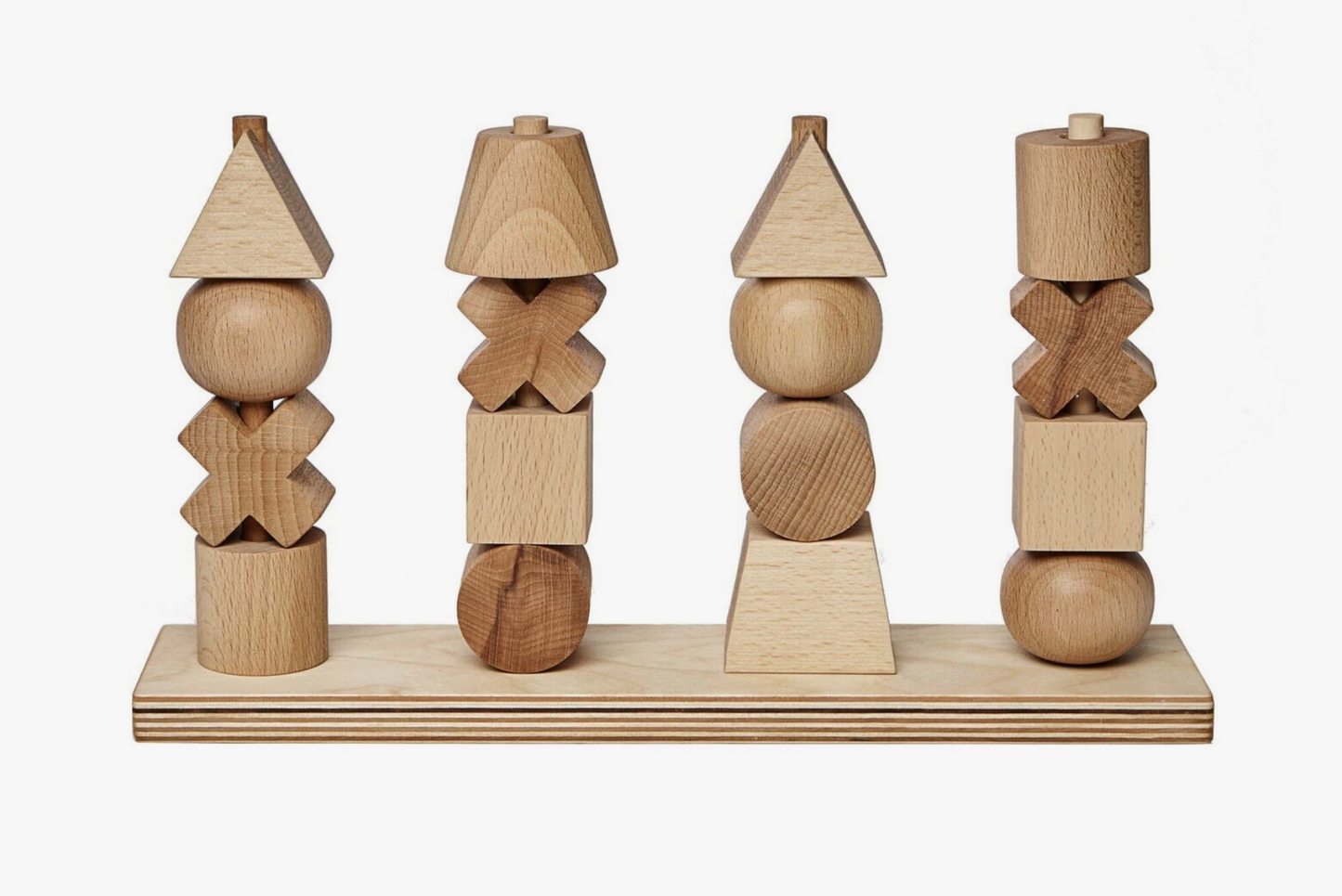 Stacking Montessori Toy. Can you help the figures to climb up the fence? How would you like to arrange them?