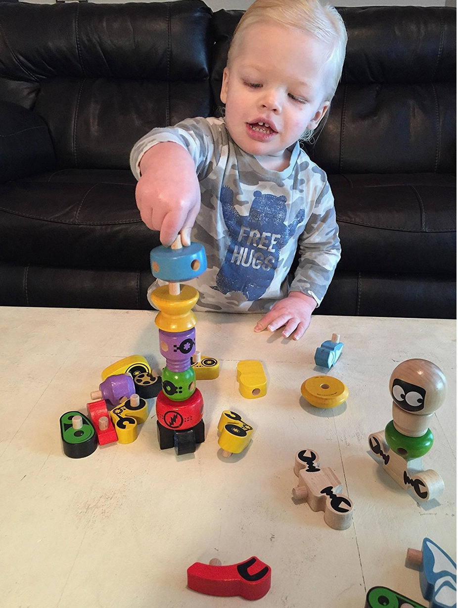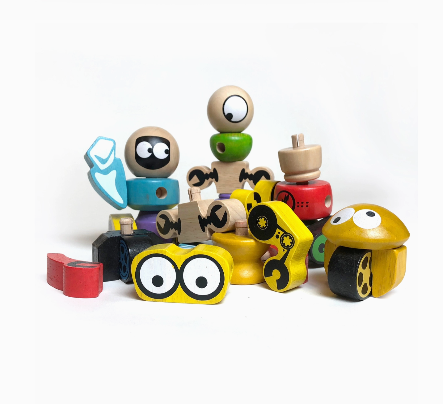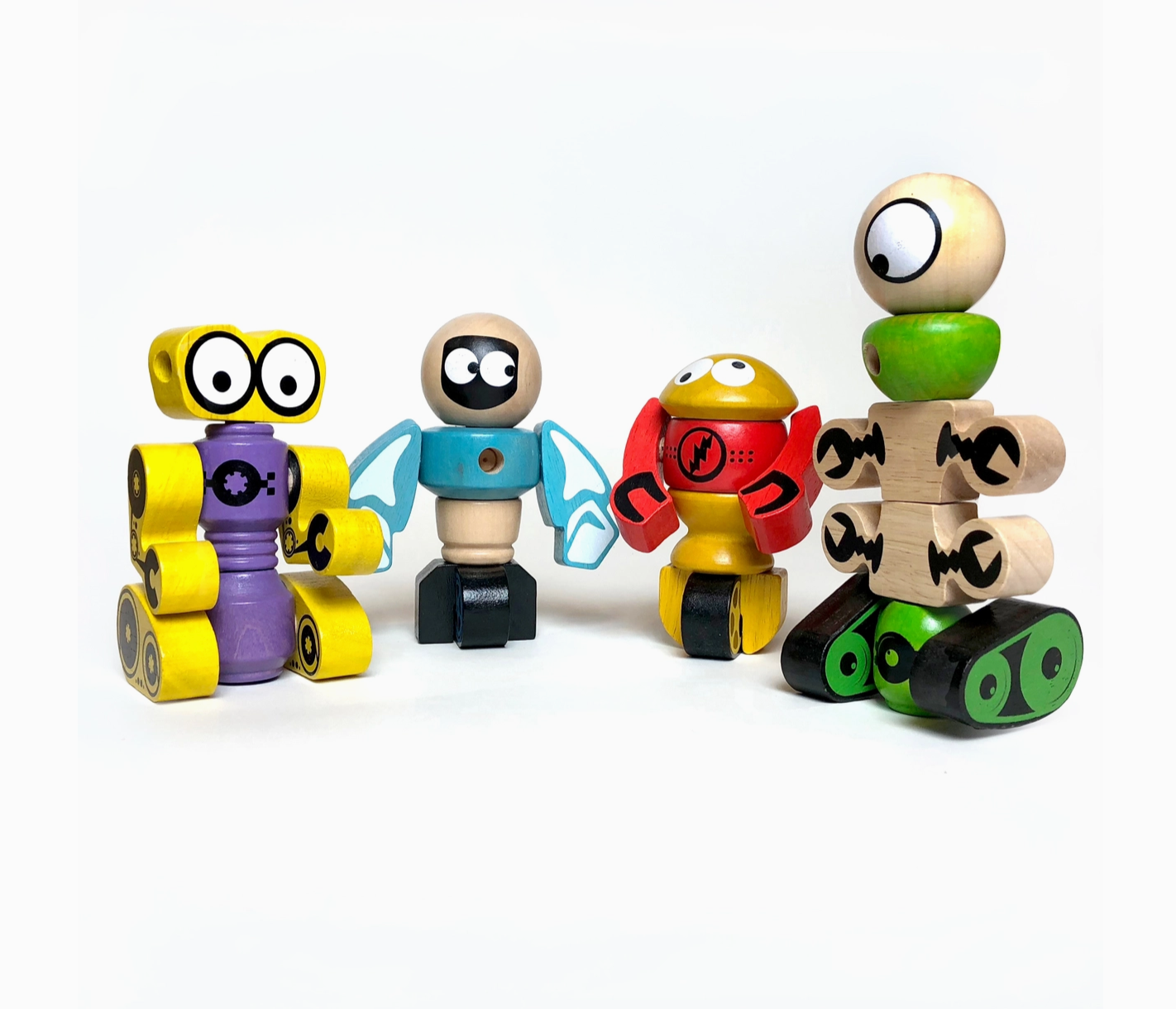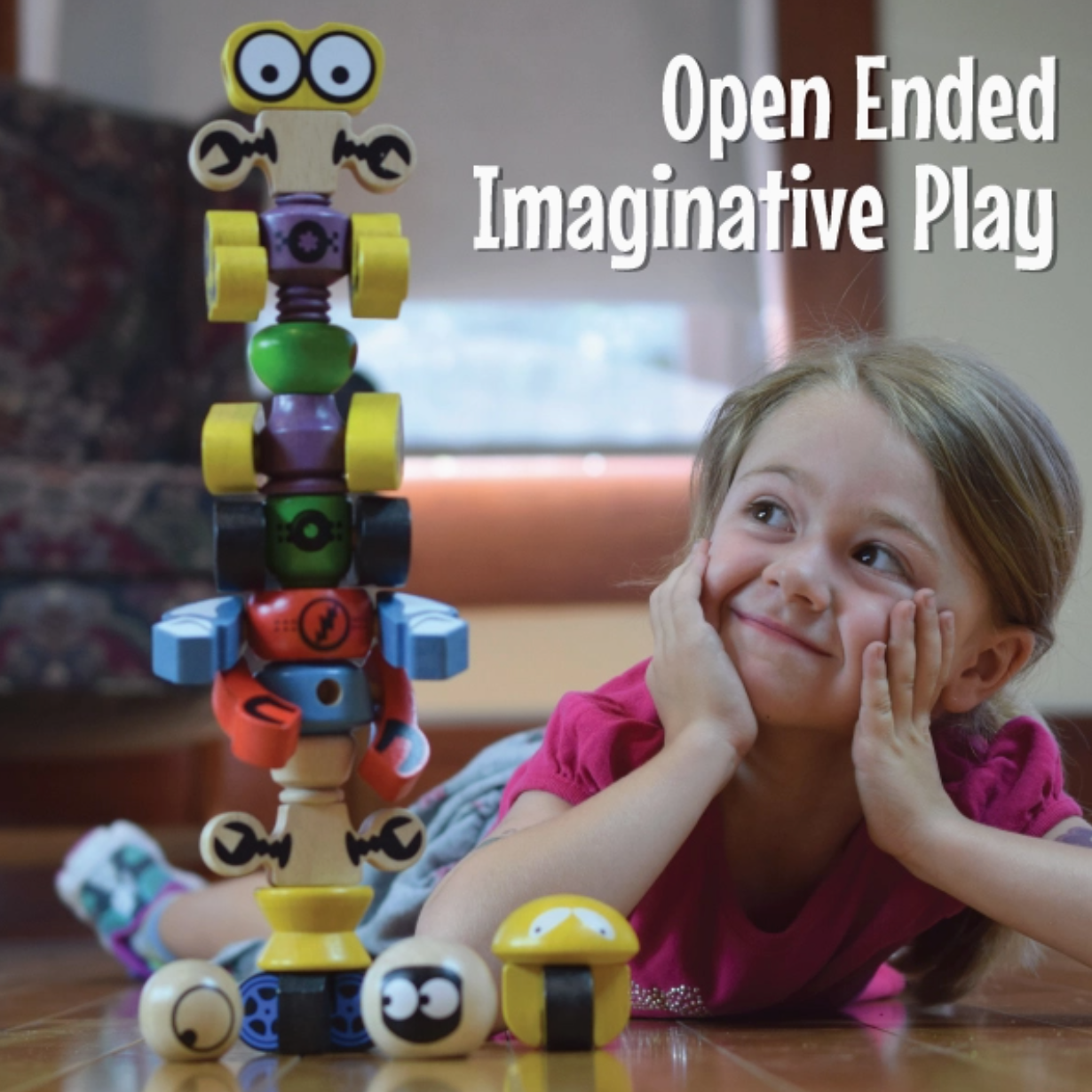 This 28-piece playset will please space-crazy kids and their eco-minded parents. Everyone loves to stack and connect the chunky components to create colorful robots of all shapes and sizes. Whether you are building four little robots to help defend your intergalactic base, or you build them into one super-bot, there is endless fun and combinations to be had! All of the pieces are made from rubberwood, with child-safe stains, and super easy to clean. The playset helps to develop creative thinking and problem-solving skills in your little ones. Intended for ages 3 and up. Based in Fort Collins, Colorado, BeginAgain draws inspiration for our fantastic, wacky and educational toys, games and puzzles from our big and beautiful world! We design toys that satisfy all styles of children’s playing, with no batteries required. Using sustainably harvested materials, BeginAgain works to benefit our kids and our environment.