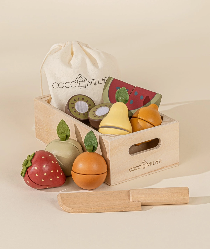 These beautiful fresh products are gonna be so good! This selection of 7 colorful fruits are a great addition to our wooden Mini-market or Kitchen*. Plus, they are sliceable and come with the cutest wooden knife. Kids love to pretend play, which is perfect since imitation is an important and determining factor in the development of our little ones.