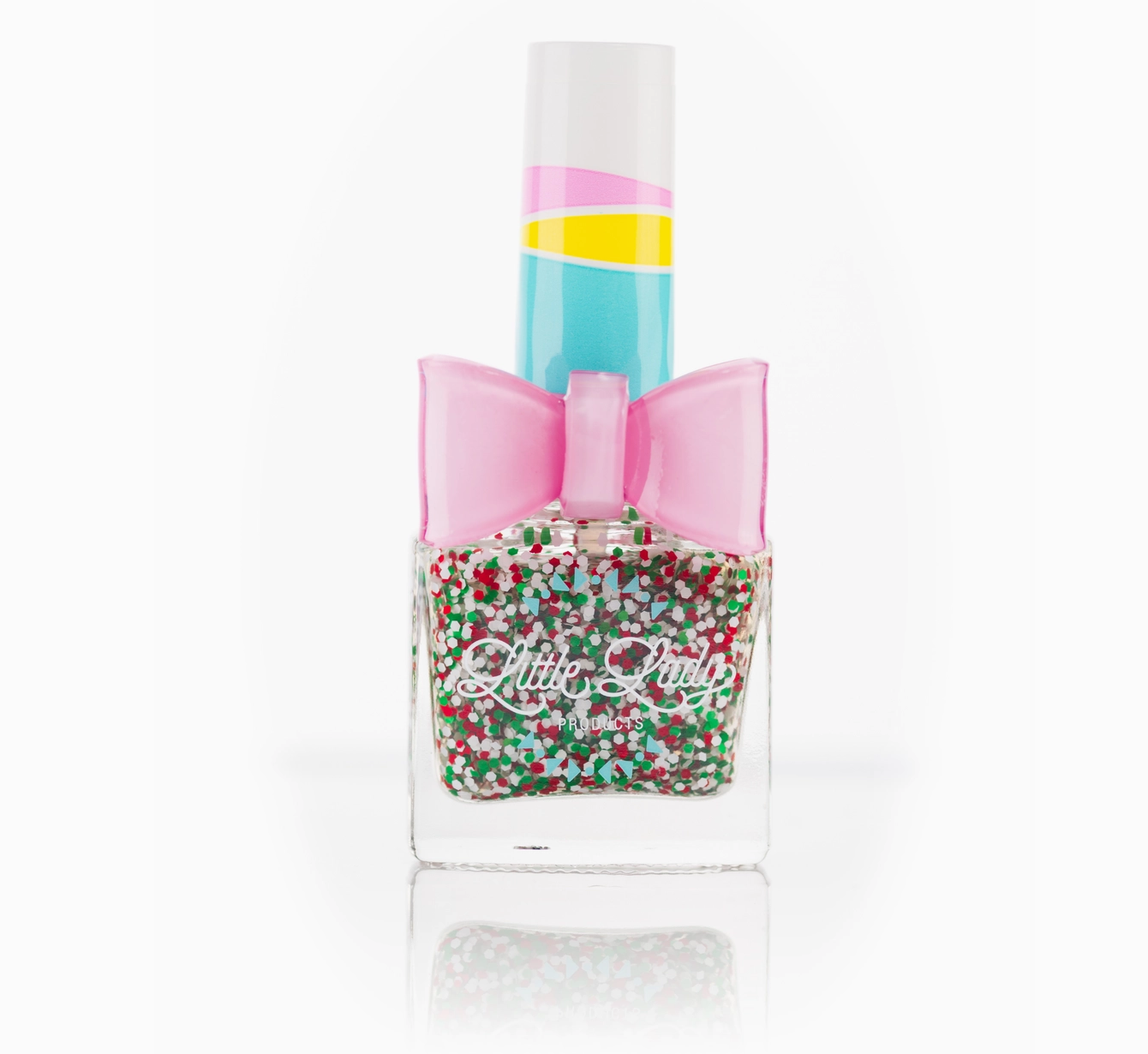 Get in the holiday spirit all year long with peppermint sprinkles. This candy cane in a bottle is a perfect treat! Match with So Very Strawberry for a perfect festive minicure. 7.4 ml/ 0.25 fl oz Scented when dry Rich, long-lasting color 7 toxin free (Product does not contain any of the following: Formaldehyde, formaldehyde resins, Toluene, Camphor, Dibutyl Phthalate (DBP), Triphenyl Phosphate (TPHP), Xylene) Vegan Animal cruelty-free Dries quickly Made in the USA Child sized, wearable bow ring included