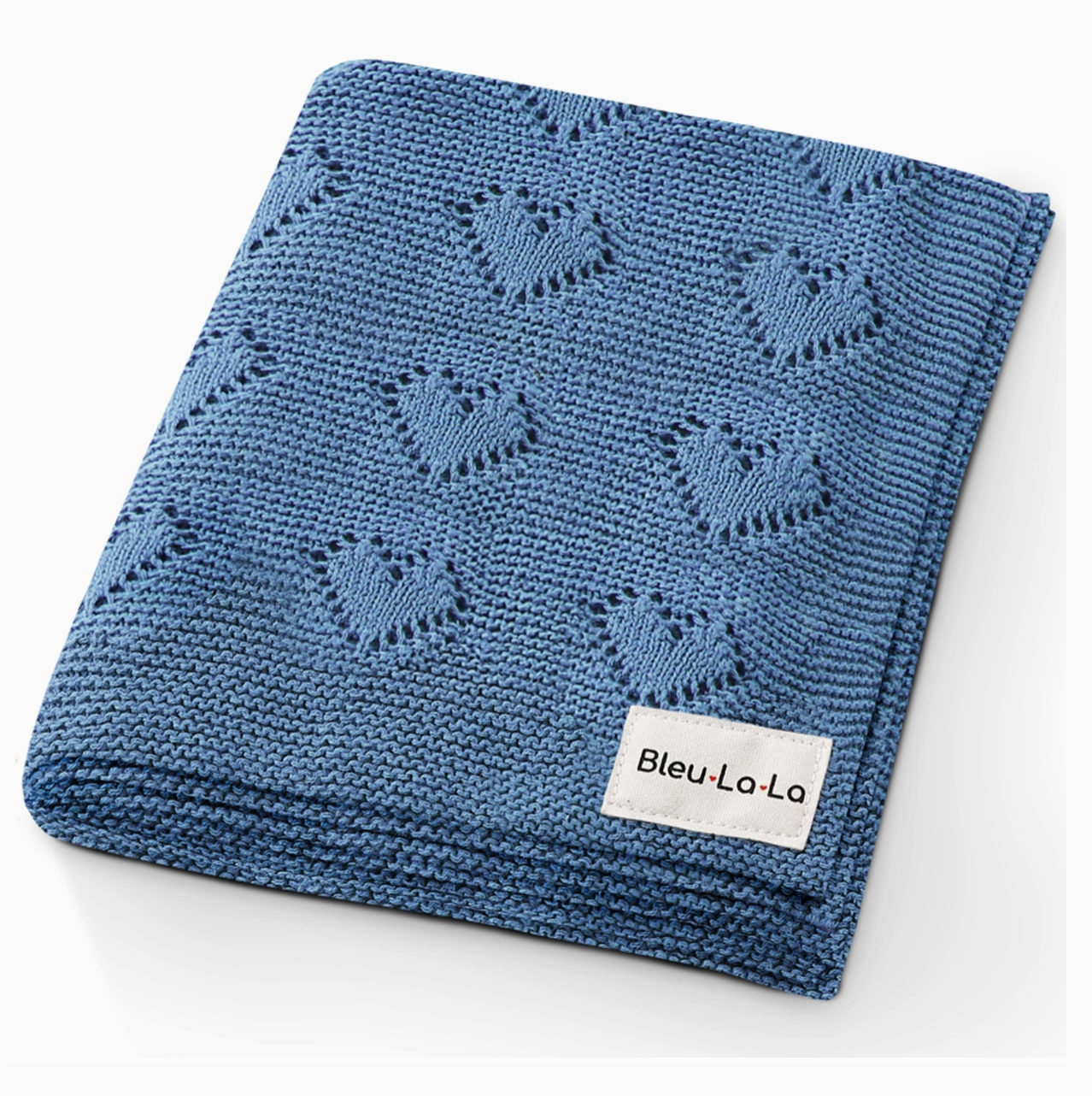 100% Luxury Cotton Swaddle Receiving Baby Blanket - Heart Denim Blue