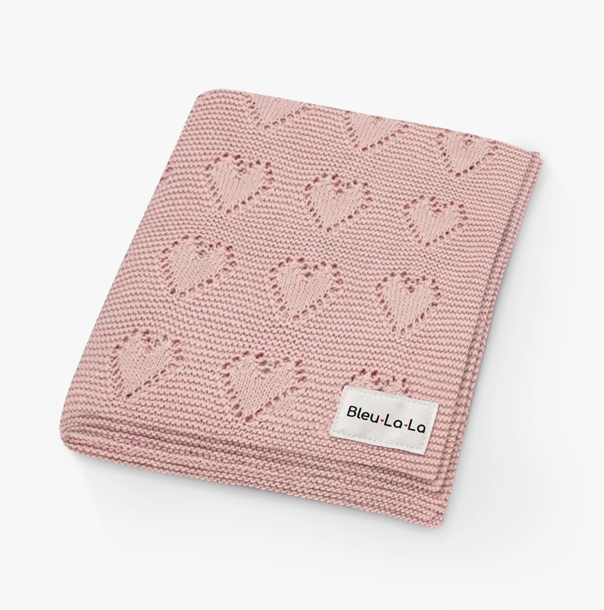 100% Luxury Cotton Swaddle Receiving Baby Blanket - Heart - Pink