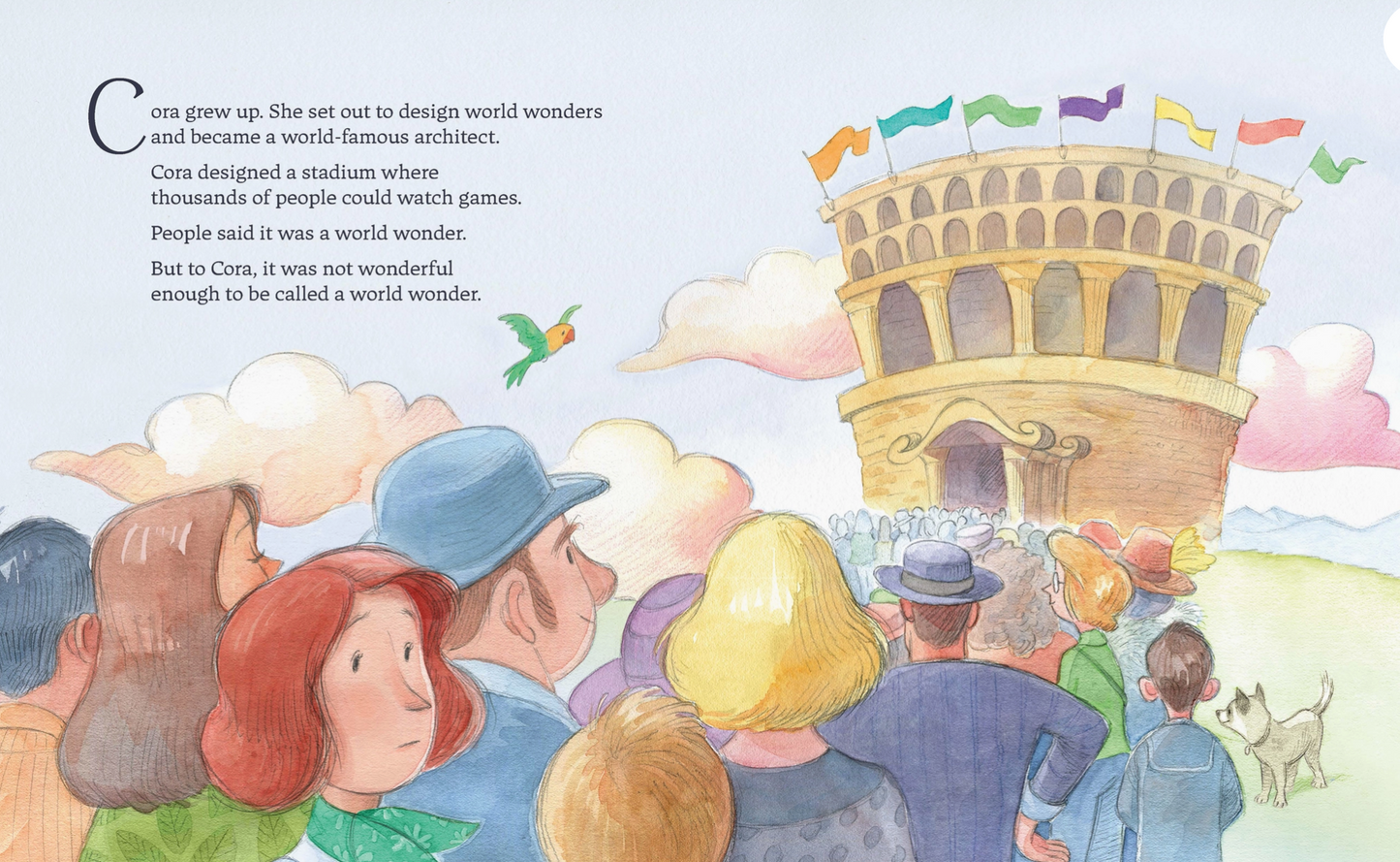 Young readers will join Cora, a girl with big dreams and even bigger aspirations, on a journey to discover what makes life truly meaningful. Ever since she was a little girl, Cora has dreamed of designing truly fantastical things, awe-inspiring structures that everyone recognizes as world wonders…and that’s exactly what she does!