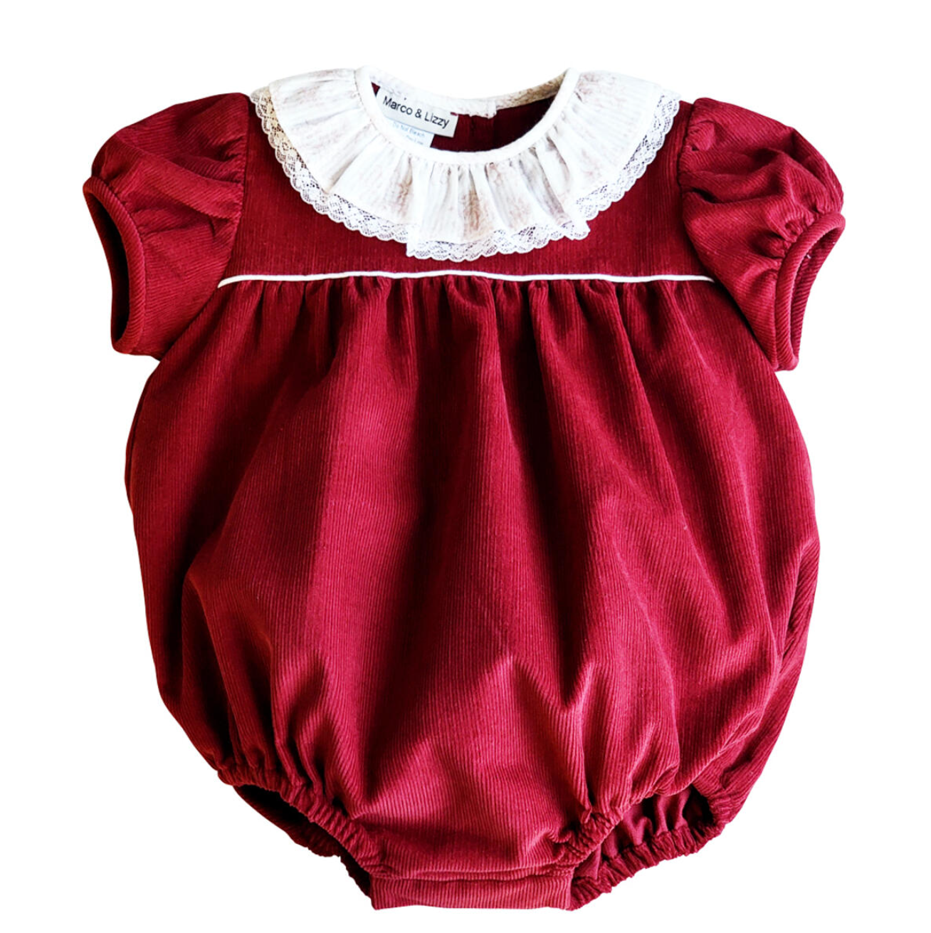 Avignon Collection Burgundy Corduroy Girl's Romper