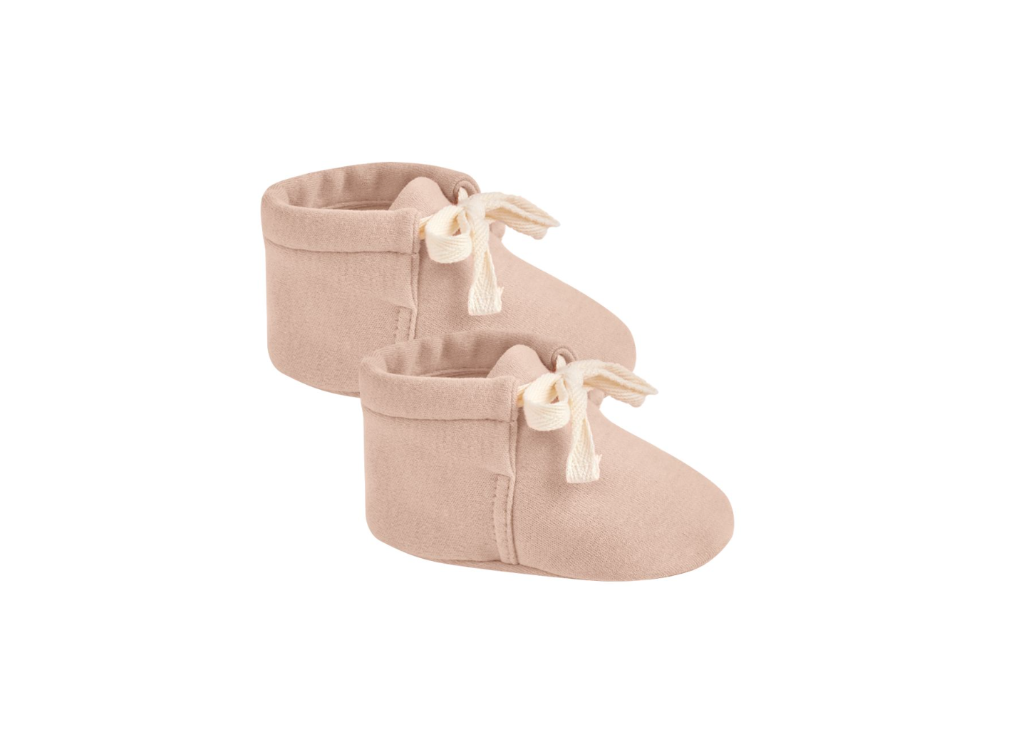 | The softest baby booties to complete any outfit! Ties for a secure fit. Color: Blush Made of 100% Organic Cotton |