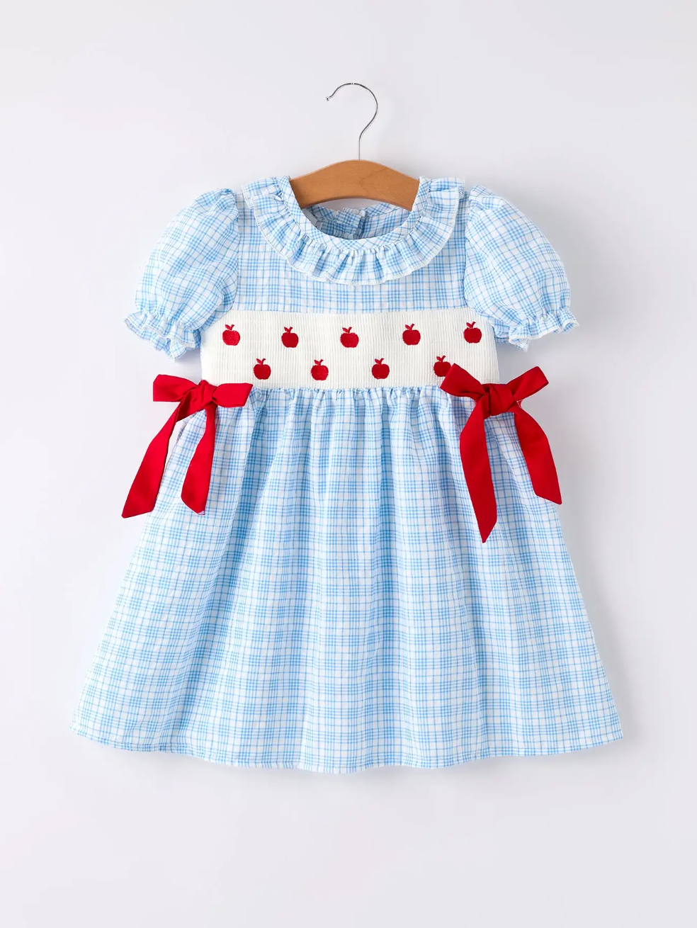 Back To School Blue Plaid Girls Cotton Dress