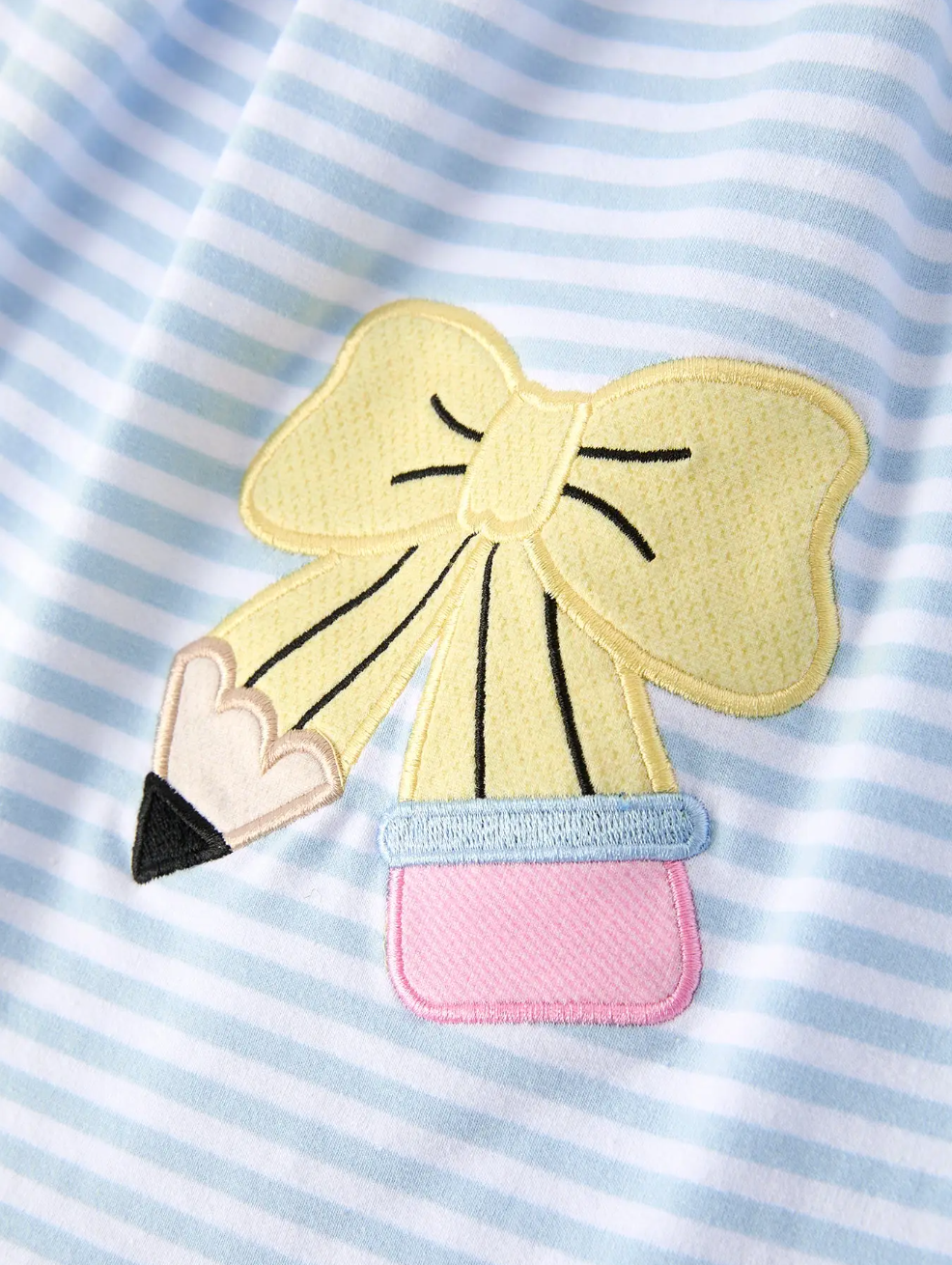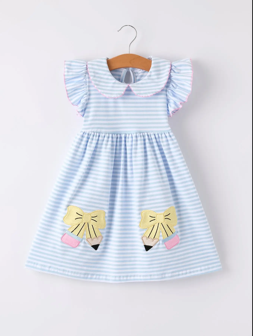 Back To School Girls Plaid Pencil Applique Bow Dress
