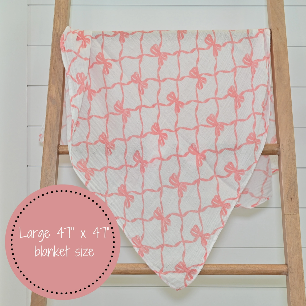 * SOFT AND COZY SWADDLING BLANKET - Wrap your little loves in LollyBanks extra soft 100% cotton muslin swaddles to make your baby feel safe and secure. Each 47x47 blanket provides enough space to snuggly and securely wrap your newborn as well as provide comfort through the toddler years. PRETTY PINK BOW - This girly bow print is perfect for keeping in the nursery or using as a stroller cover for your baby. Moms and dads will love receiving these as a baby shower gift or welcome present. * BREATHABLE AND LIGHTWEIGHT - This swaddle is made from high-quality 100% cotton muslin fabric giving you peace of mind knowing that you are wrapping your baby in a breathable yet durable blanket that will stand the test of time and will save as a keepsake for years to come!
