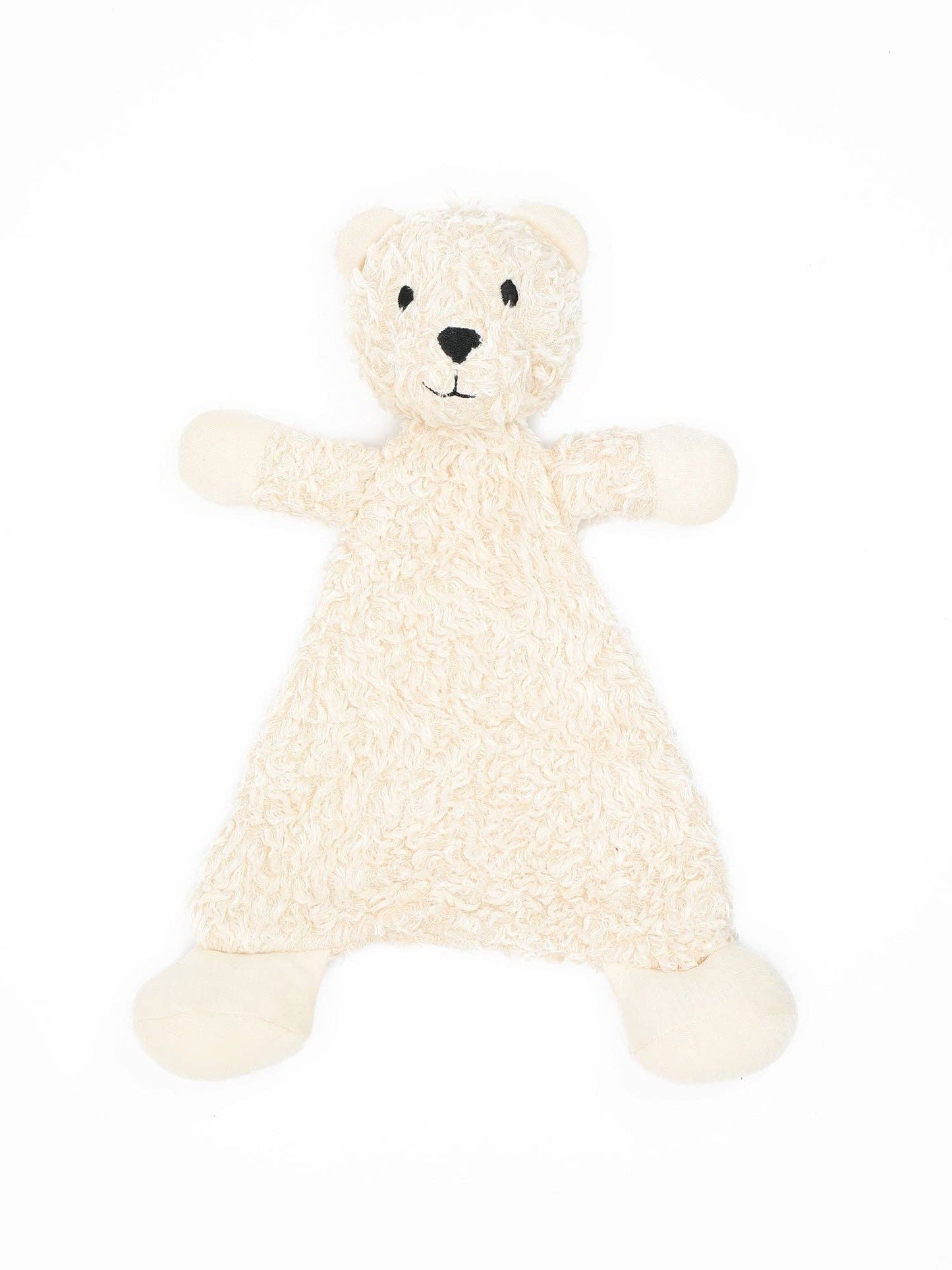 Our best-selling floppy teddy bear toy that's also sustainable and organic. Made for cuddling, our flat faux Sherpa Snuggle Bear Toy is the perfect friend for your toddler, featuring a "flat" body that is floppy, fun, and easy for little hands to hold. Lovingly made and stuffed with 100% certified organic Egyptian Cotton, our environmentally-friendly baby Snuggle Bear toys are pure from the inside out.