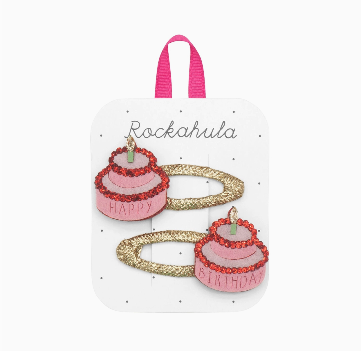 Let's celebrate! Our Birthday Cake clips are beautifully frosted with a candle and a sweet birthday message! Each cake sits upon gold ribbon wrapped snap clips.