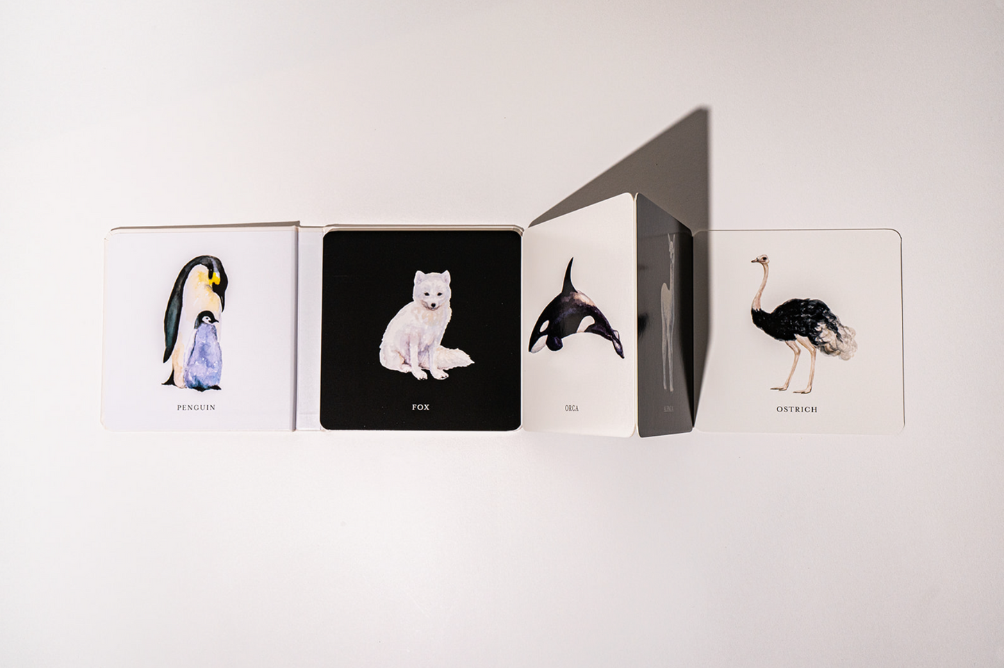 This black-and-white book for baby features beautiful fine art that is specially designed for a baby's visual development. Plus, the accordion-style format means the book stands upright and is perfect for tummy time! Infants have limited capabilities with vision upon birth and respond well to high-contrast images, which is why this black-and-white contrast book is perfect for their young and growing minds.