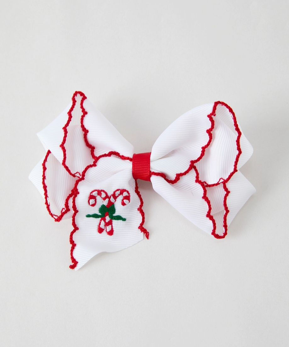 Christmas Candy Cane Embroidered Bow Hair Clip