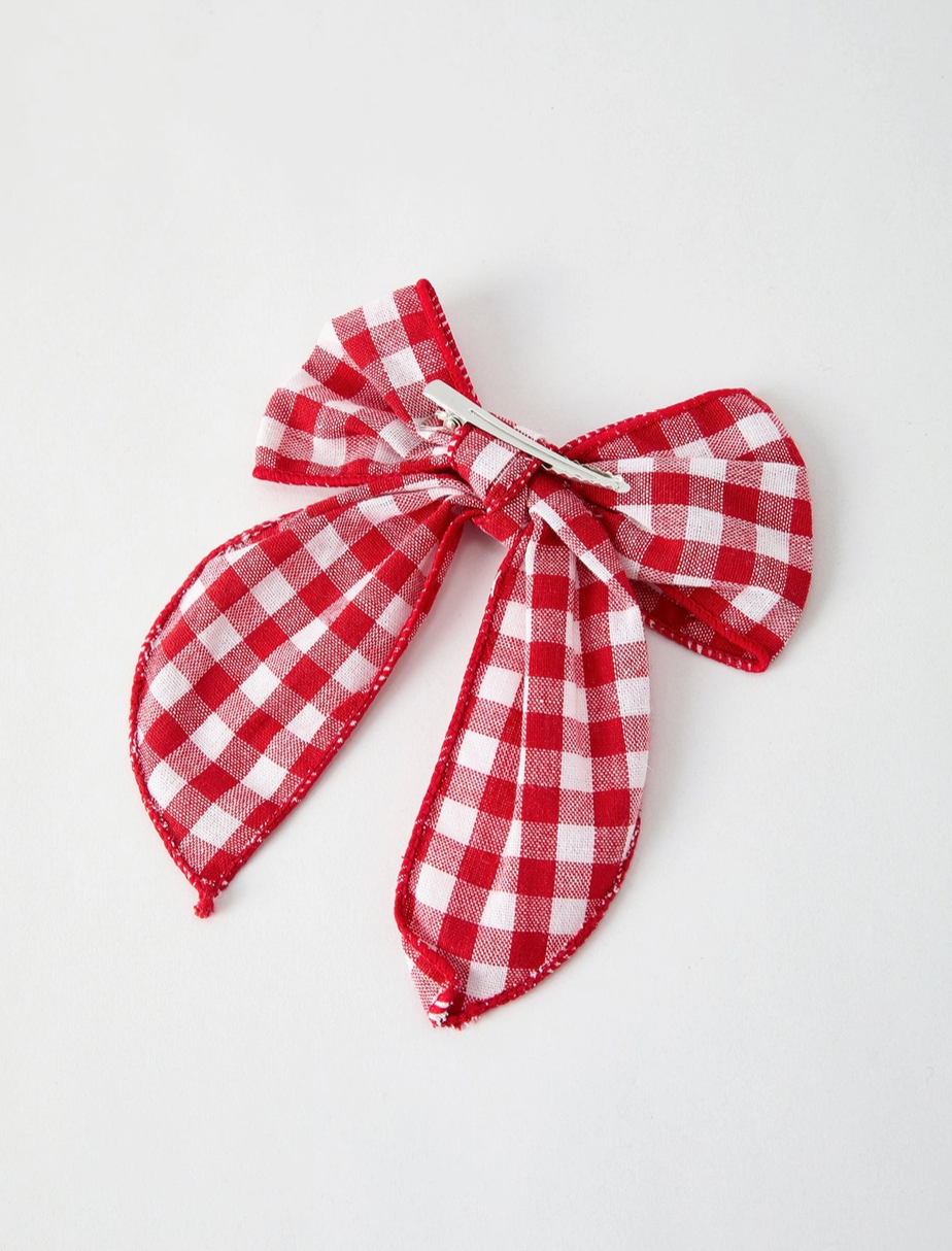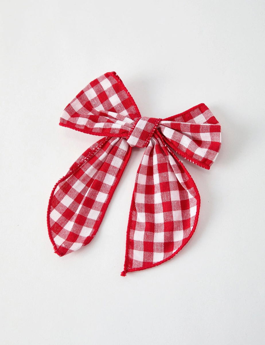 Christmas Red and White Plaid Bow 5 Inch Hairpin