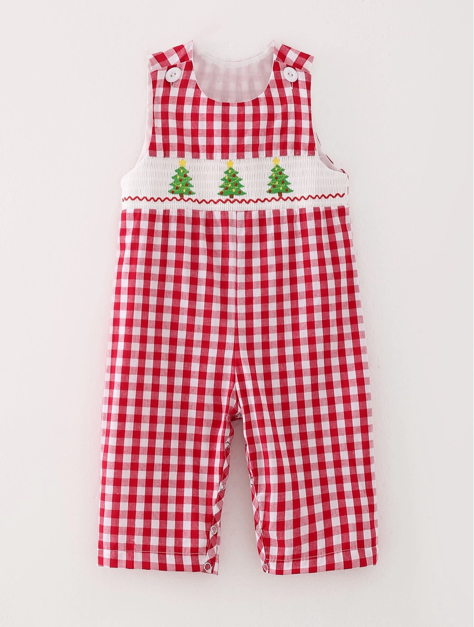Dress your little man for the holiday season with our Christmas Tree Smocking Embroidered Boys Romper. Featuring a festive Christmas tree design, this romper is perfect for family gatherings and photos. Made with high-quality materials, it provides comfort and style for your little one. Get yours today and make this Christmas a memorable one! Material:100% cotton