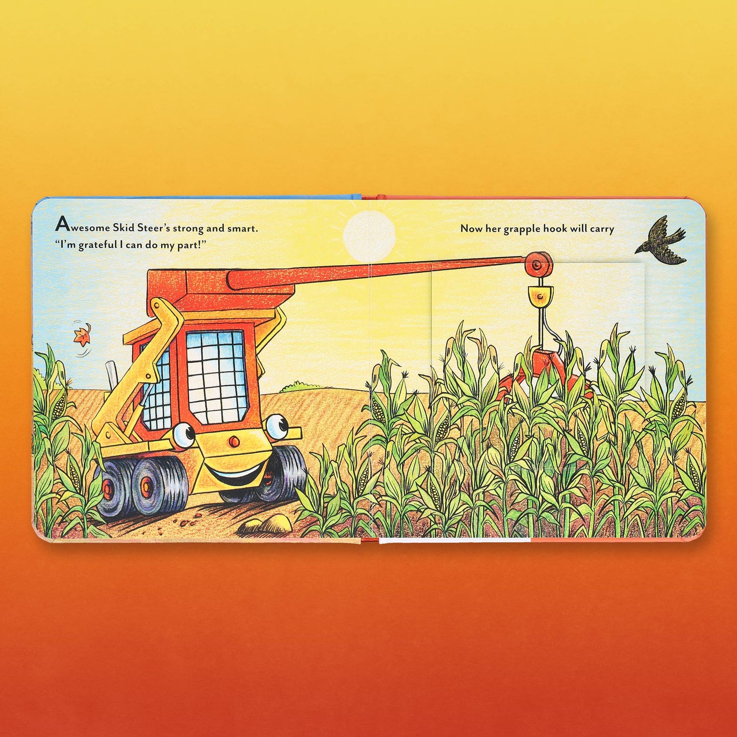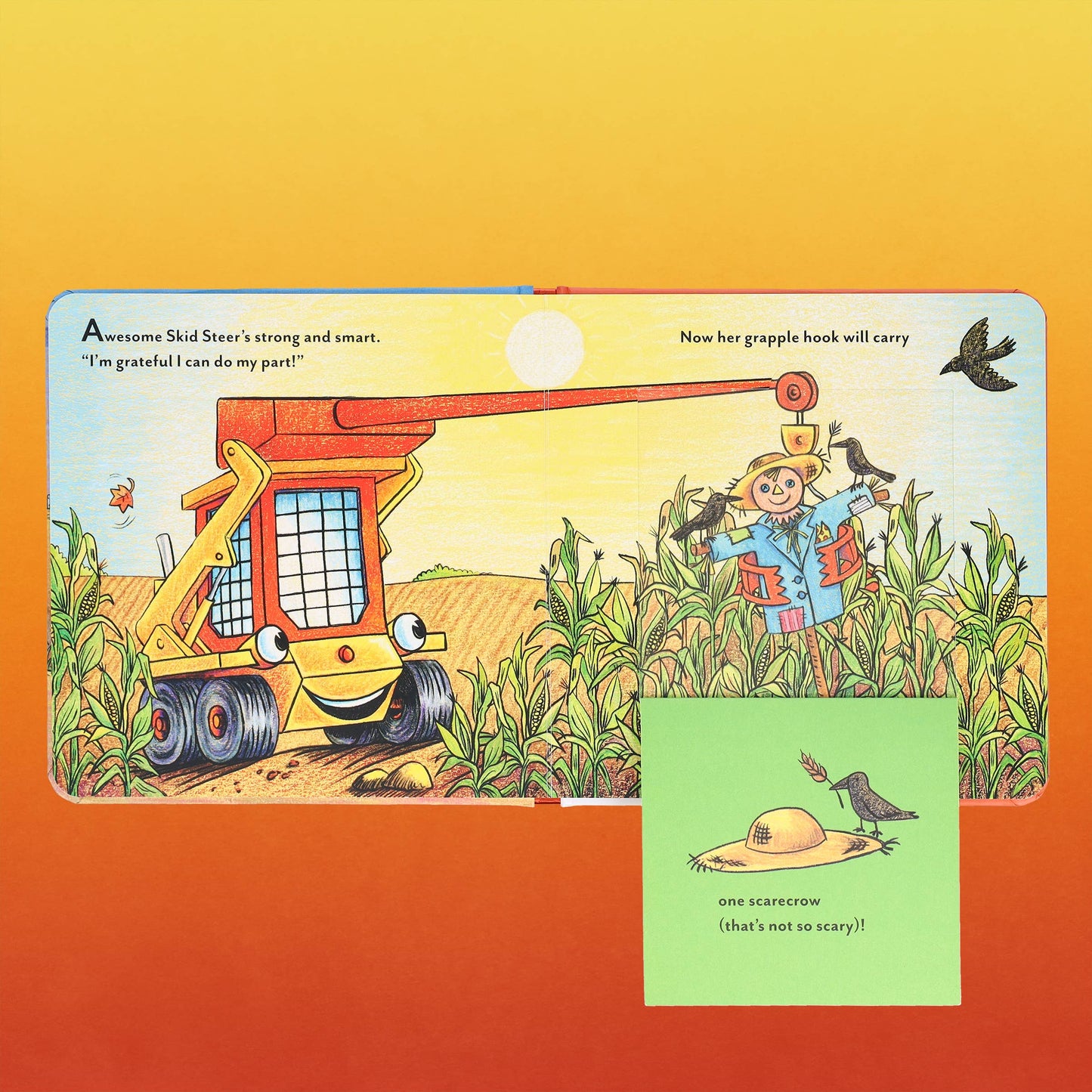 Here comes a gratitude-themed board book featuring the construction characters kids know and love! Young readers can lift the flaps to reveal delightful details as the construction crew gathers pumpkins, sets a scarecrow straight, and prepares the barn for a grateful harvest—all while feeling thankful for each other.