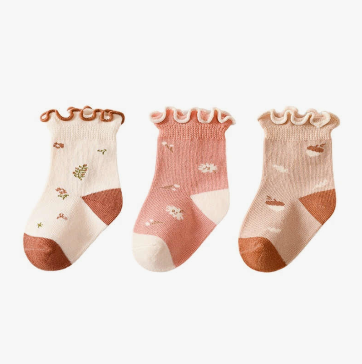 Cute Newborn Baby Socks with Wooden Ears Socks Three Pair