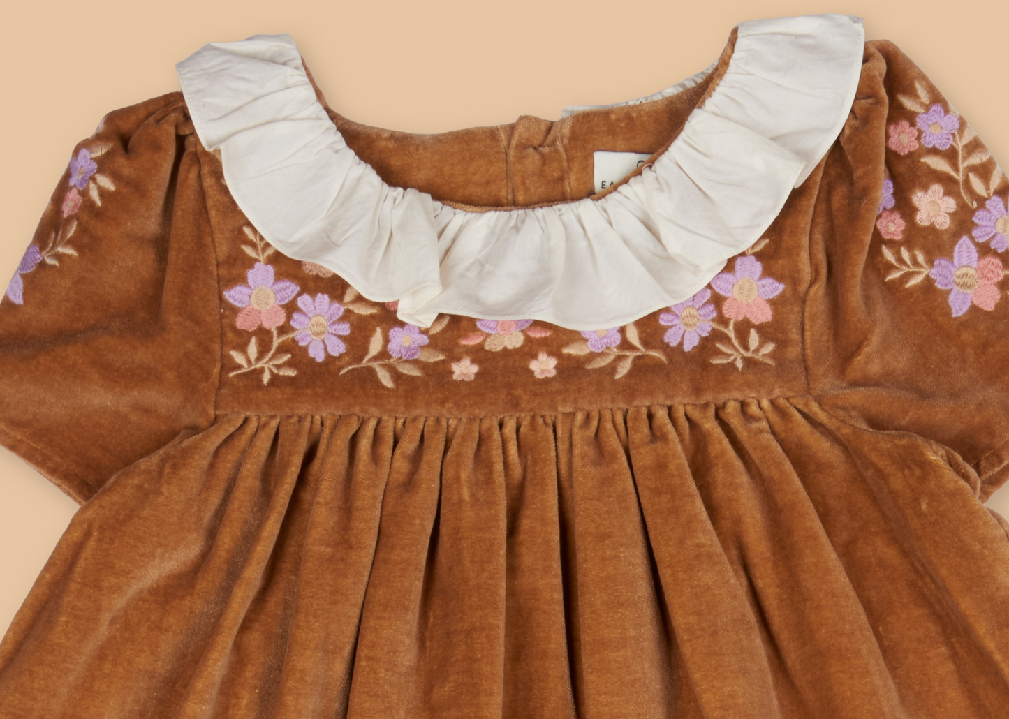 Crafted from luxurious cotton velvet, this almond velvet Erica Dress by Early Sunday brings a special flare to the autumn season.