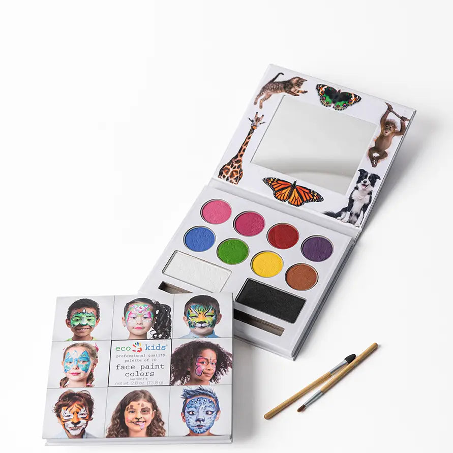Our silky smooth selection of face paint colors, approved for use on the lip and eye area, offers bold coverage, fine line details or soft pastel glows. Simple to apply and easy to remove, our professionally formulated palette of 10 colors can be used worry free on children and adults alike. Two applicators included.