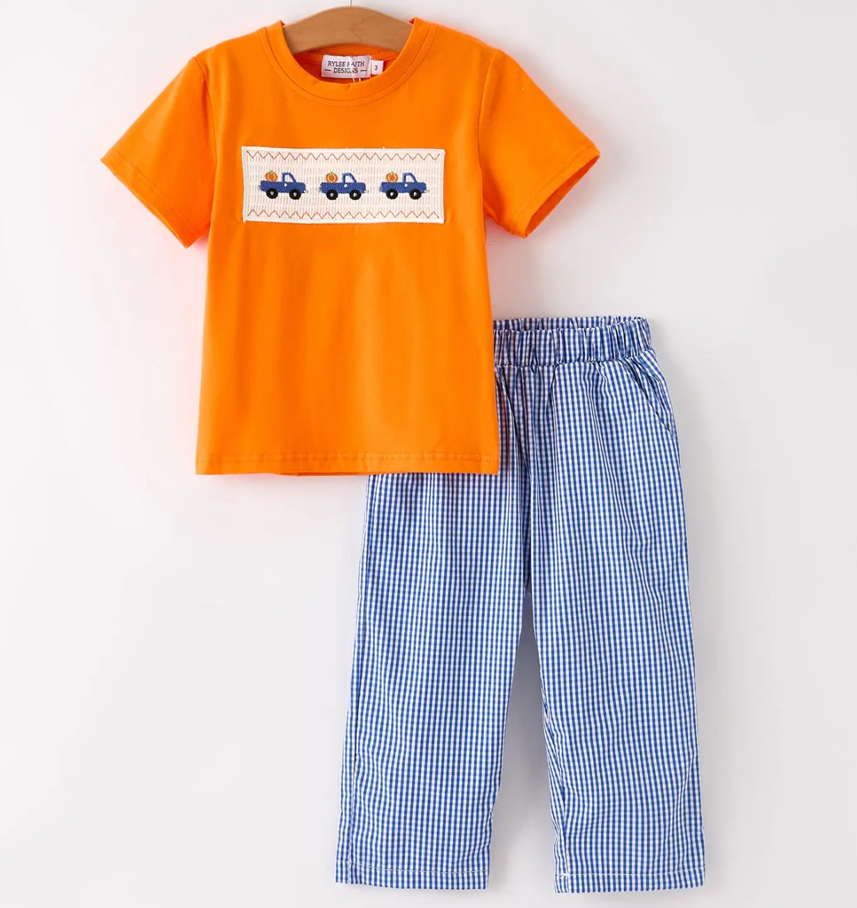 Fall & Thanksgiving Truck Smock Embroidery Baby Boy Set