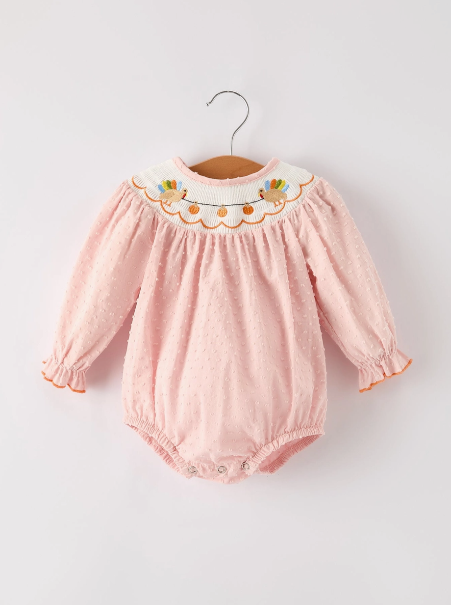Fall Thanksgiving Turkey Pumpkin Smock Baby Romper