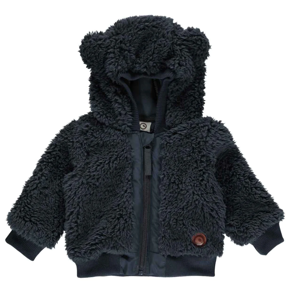 Super cool polyester fleece jacket with zipper at the front and a lovely soft hood with cute teddy bear ears.