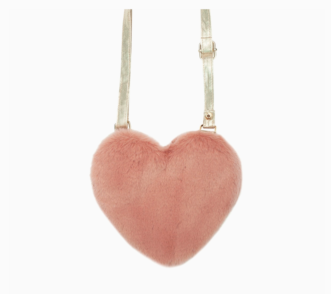 Made from super soft dusky pink faux fur, in the cutest heart shape. With a magnetic dot closure, full lining and an adjustable gold strap with a break point for safety. Bag dimensions: 17.5cm x 17.5cm 1cm.