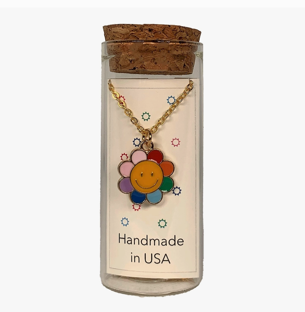 Happy & Colorful Flower Charm Necklace in A Bottle - 16 Inch