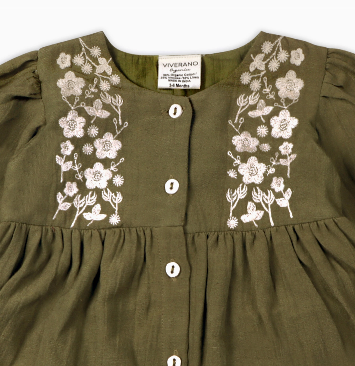 - All-season, super soft linen-blend baby dress with matching bloomer set; comfy and cozy. - Machine washable, durable and long lasting. - Eco-friendly, chemical free, non-toxic, pure, natural & organic baby clothes. - Ethically produced in India, supporting better livelihoods for small grower farmers. Viverano, an American brand, was founded in 2013 with the simple idea of producing eco-friendly, pure and organic baby clothes. Viverano baby clothing is known for its soft hand feel and high quality. Pamper your precious babies with our non-toxic, lightweight, all-season, natural baby outfits. Experience 'Organic Comfort' by Viverano, a family-owned small business.