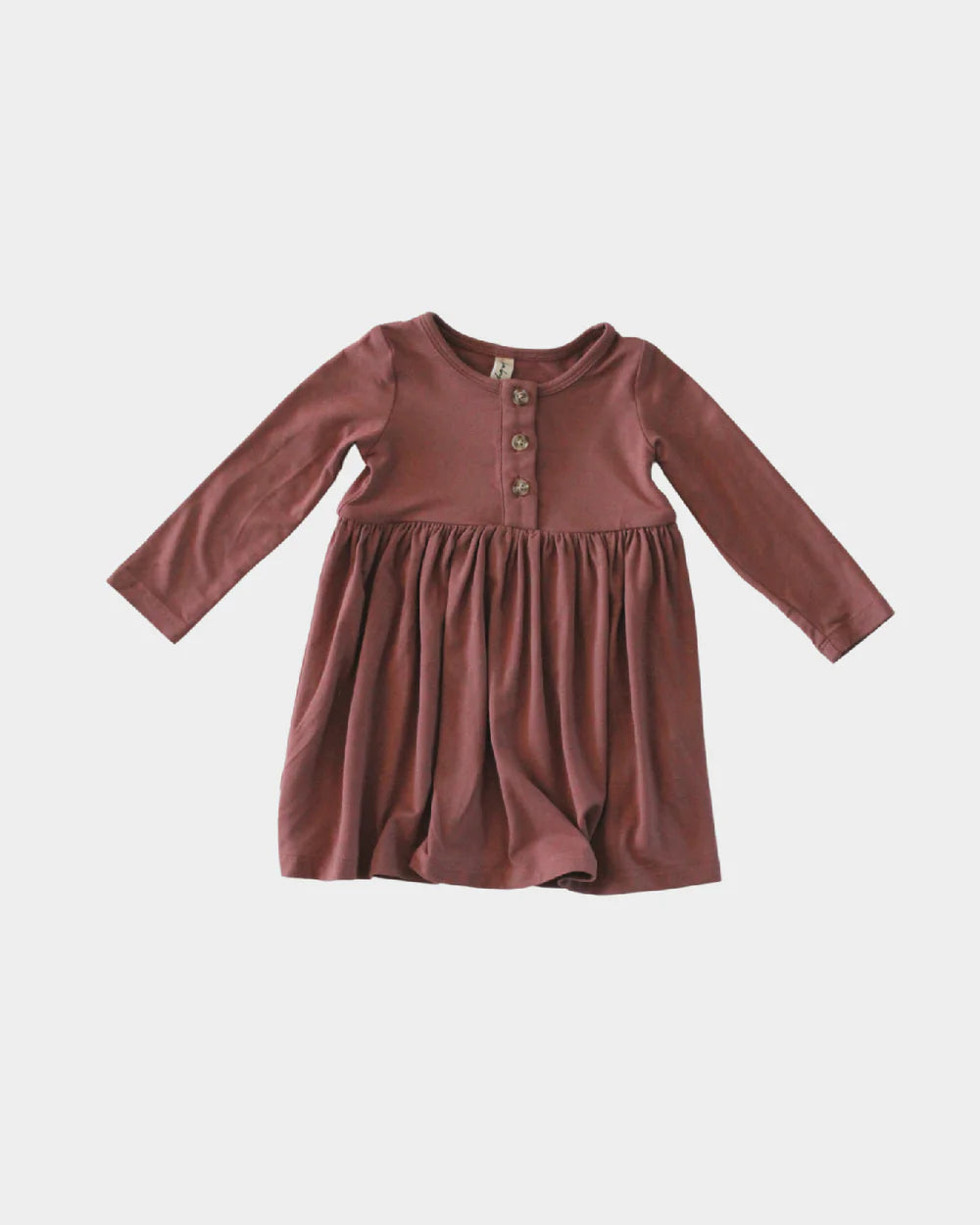 Our newest favorite Henley Dress brought back to our Fall season with longsleeves.  Features a gathered body, functional button placket, and soft bamboo jersey just perfect for twirling.