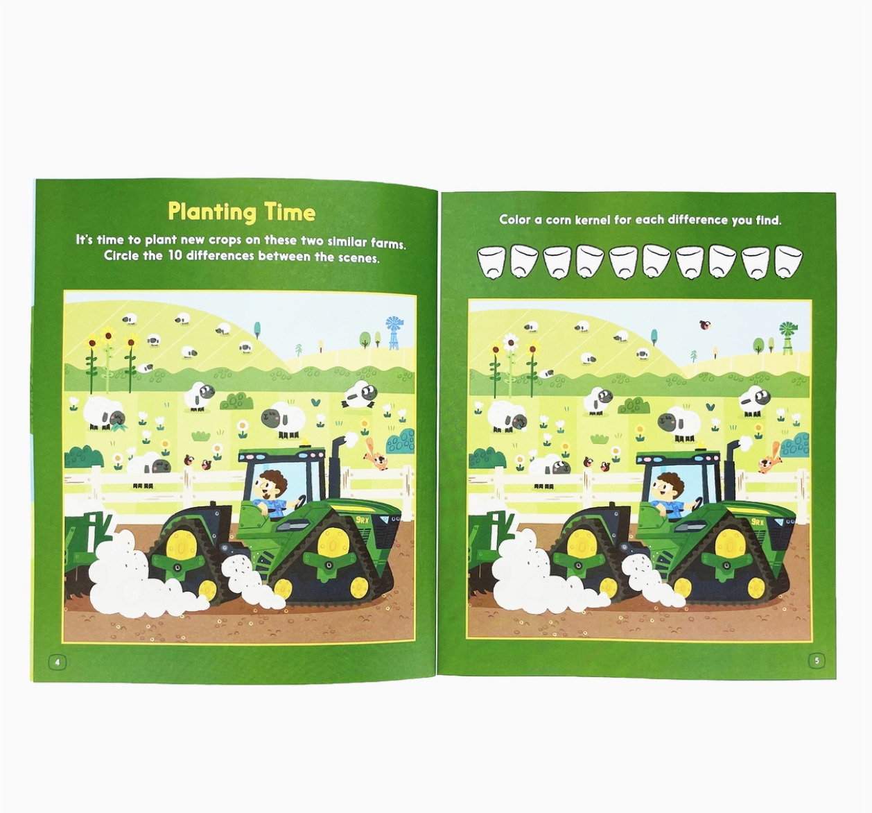 Big fun calls for big machines—just like the ones in this activity book! Enjoy over 100 action-packed activities and puzzles in one book, featuring favorite John Deere machines like the tractor, dump truck, and bulldozer! Lead the loader through the maze, help the excavator make its way through a busy construction site, or spot items out of place that doesn't belong on the busy farm.