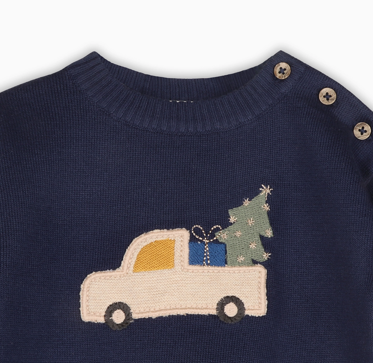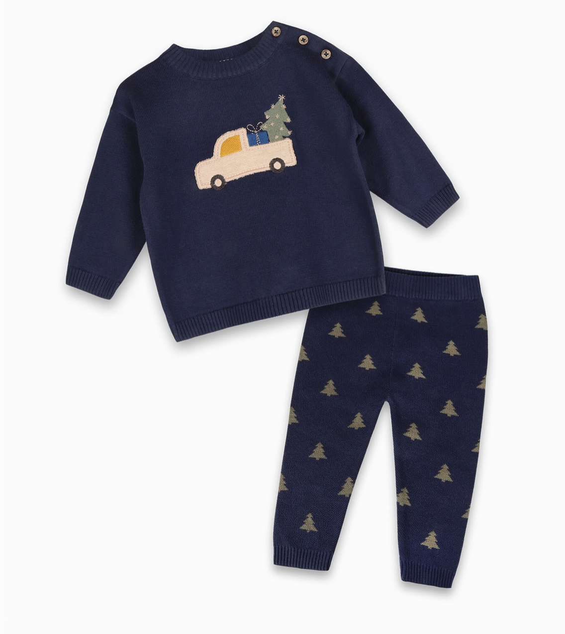 Jolly Truck Applique Sweater Knit Baby Pullover & Pant Set