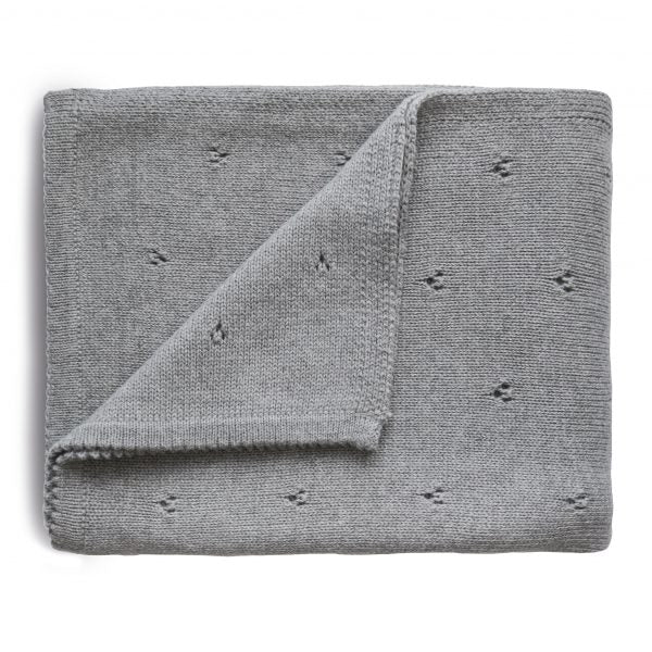 Knitted Pointelle Baby Blanket (Gray Melange) - Organic