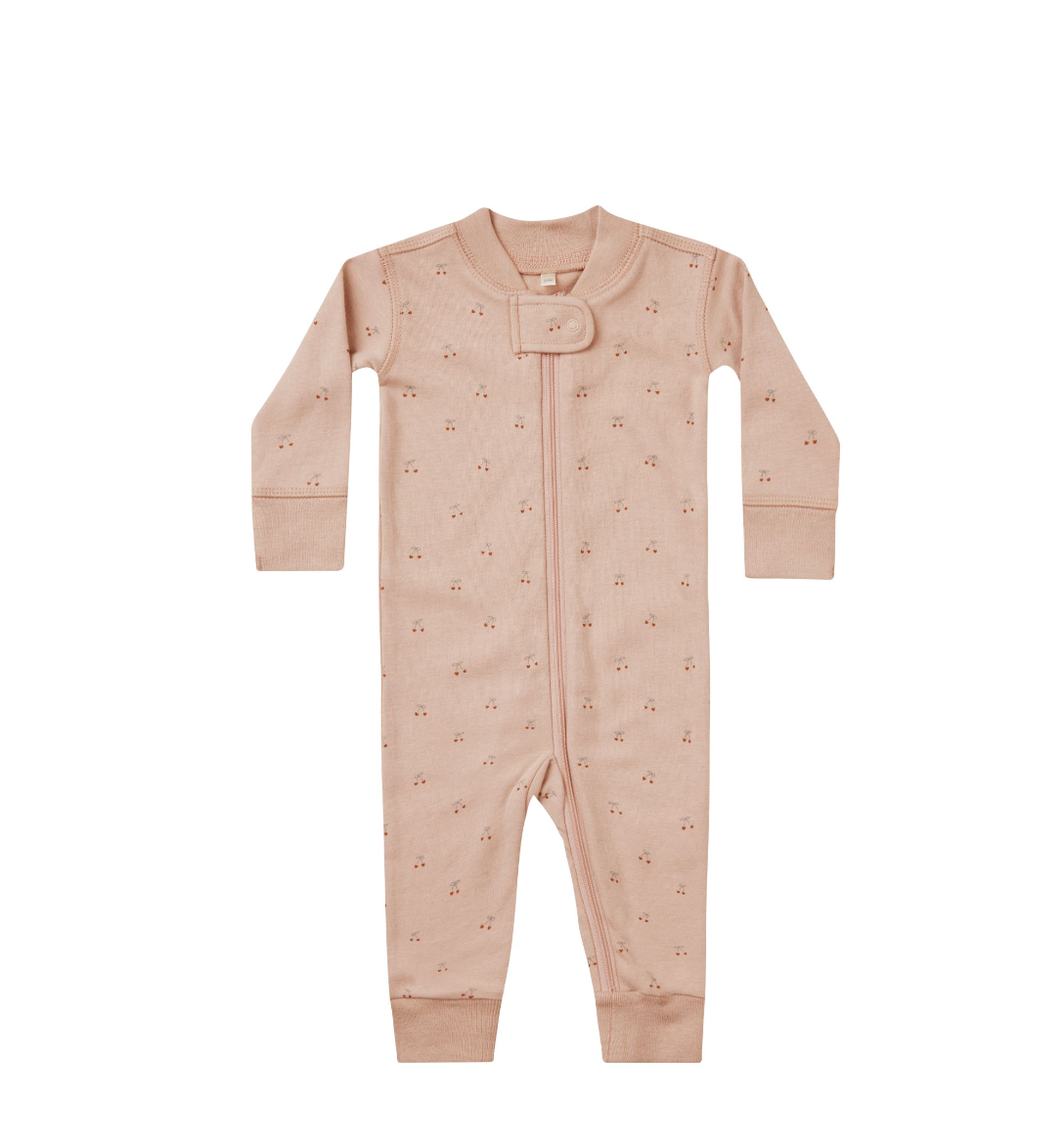 | Zip long sleeve sleeper made out of our velvety soft organic brushed fabric will keep your little one endlessly cozy. Featuring our ‘cherries’ all-over print blush. Care: Machine wash cold. Tumble dry low. Made of 100% Organic Cotton |