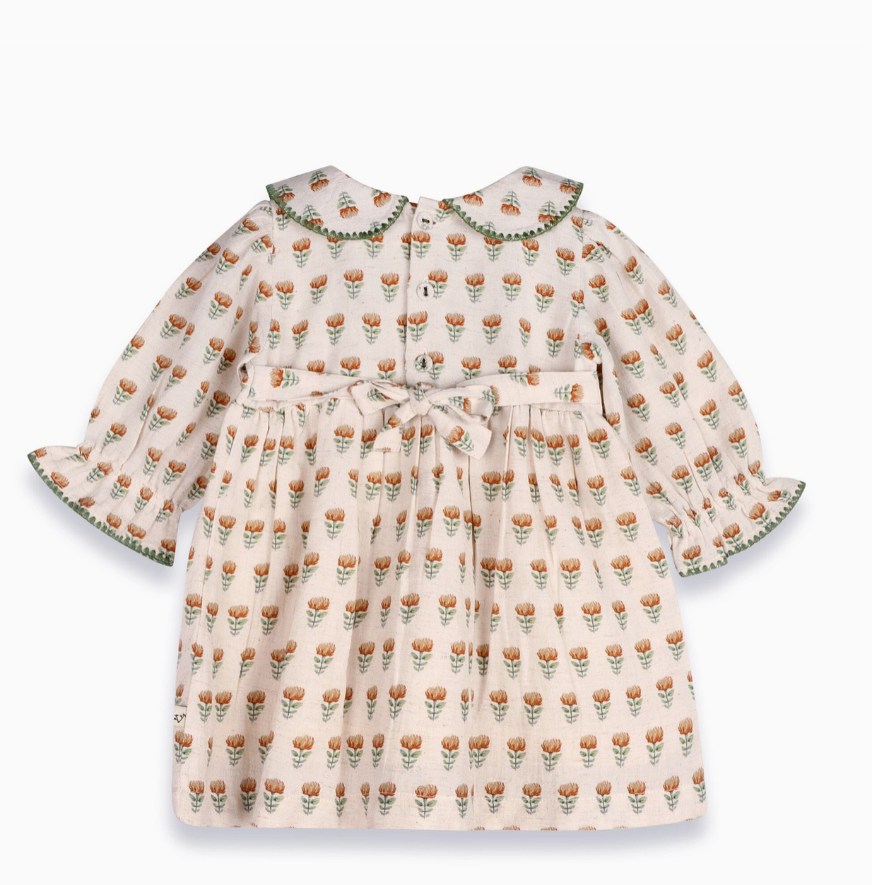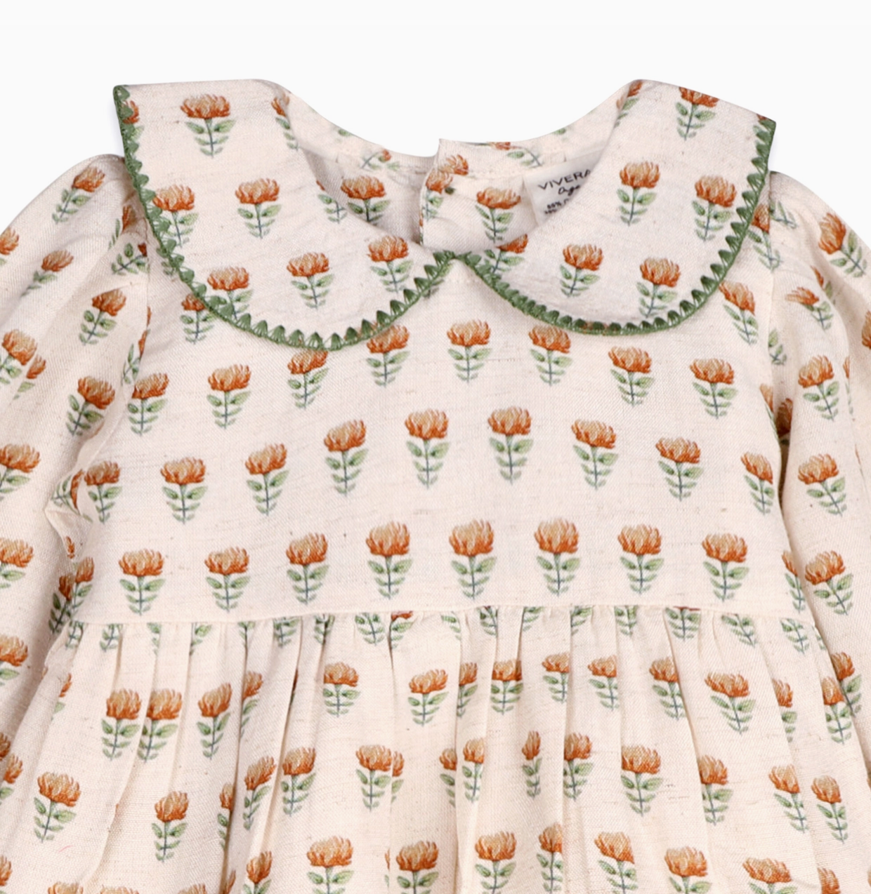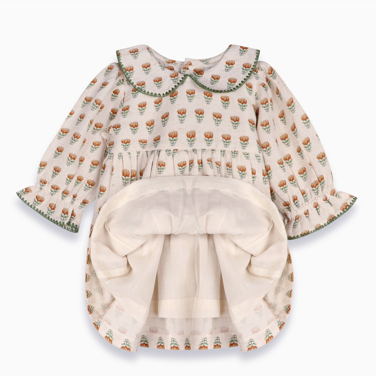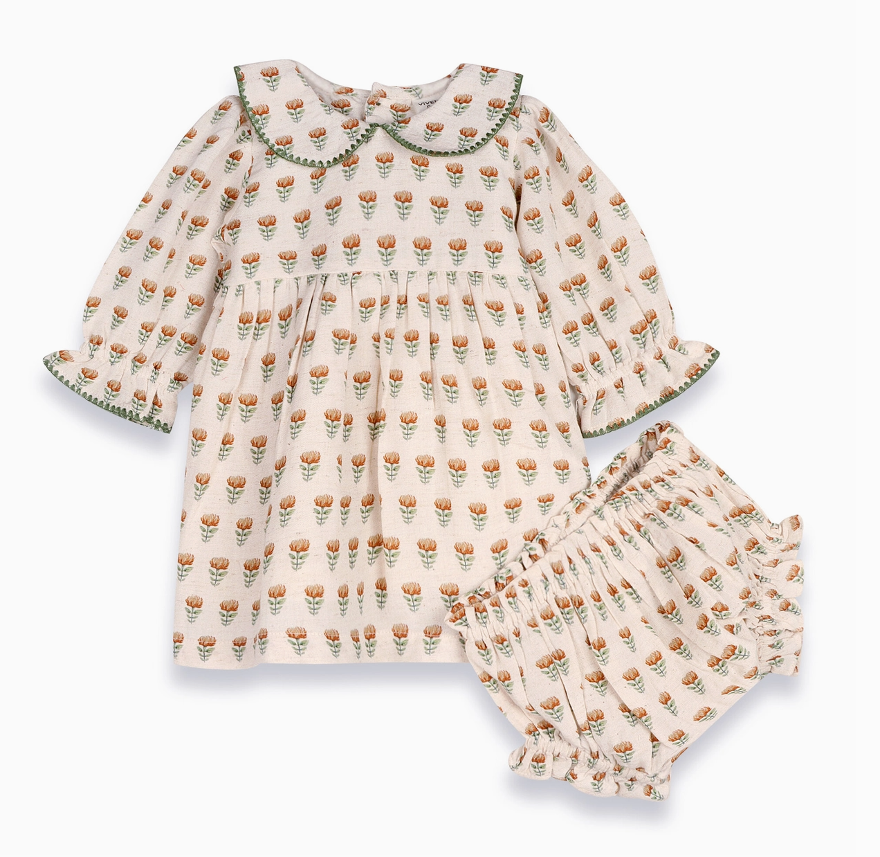 Ina Block Print Floral Baby Dress & Bloomer Set (Linen)