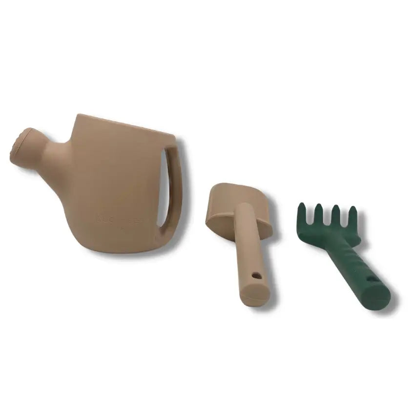 Our silicone watering can set is eco-friendly and made to last! The set consists of 3 pieces and includes a watering can, shovel and rake - all made from flexible, durable, food grade silicone. The shovel and rake fit nicely into the bucket for easy storage. Our set is not only great for outdoor adventures but can be used at bath time too!