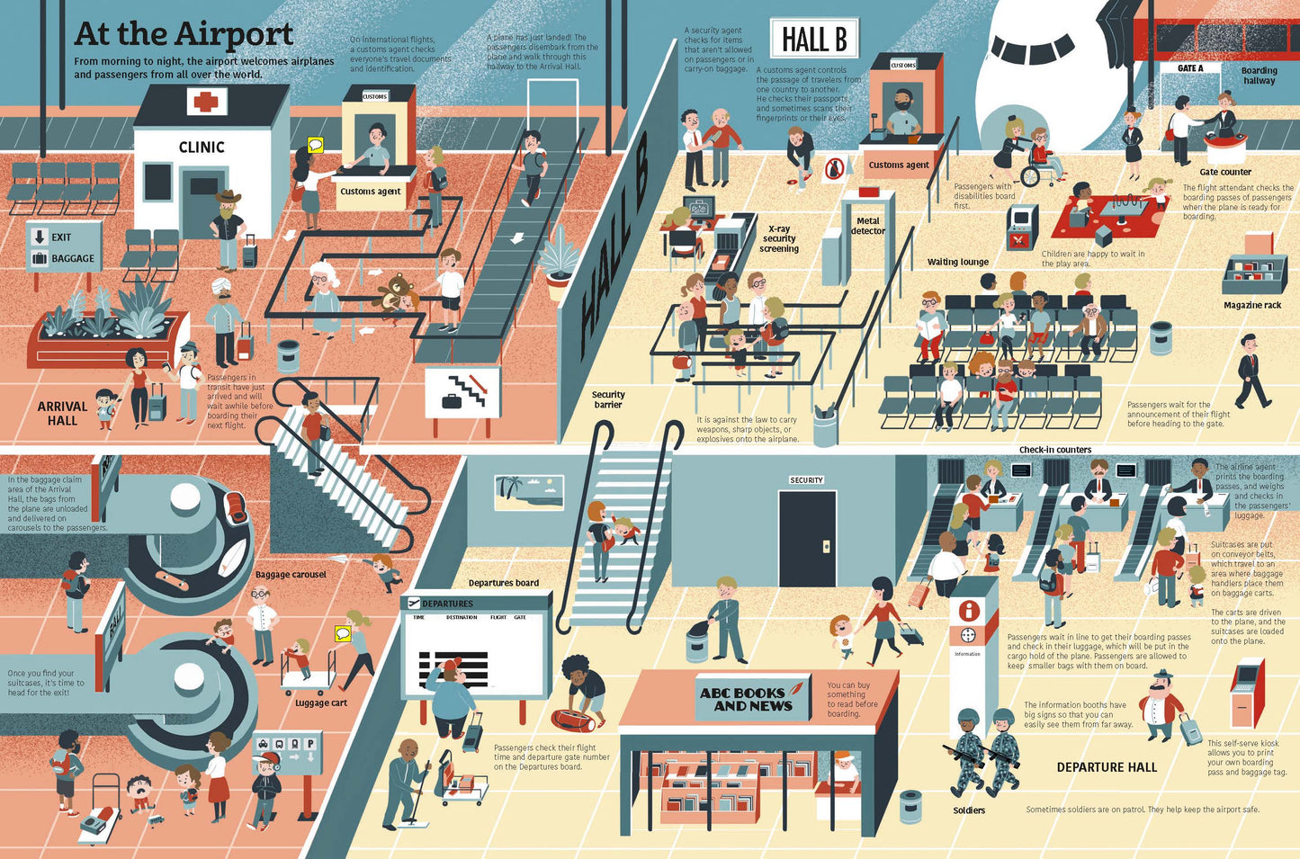 Learn all about airplanes, airports, and the fascinating world of air travel: A passenger jet lands on the runway, a plane is refueled before takeoff... Best of all, lots of flaps, popups, pull-tabs, and rotating wheels bring planes, airports, and travelers to life. Readers will poke into the cockpit of a Boeing 747, explore the innards of a baggage carousel, and help pilots get ready for takeoff. Any child who has ever wanted to take flight will adore this extraordinary collection of airplanes, from early biplanes to modern jets.