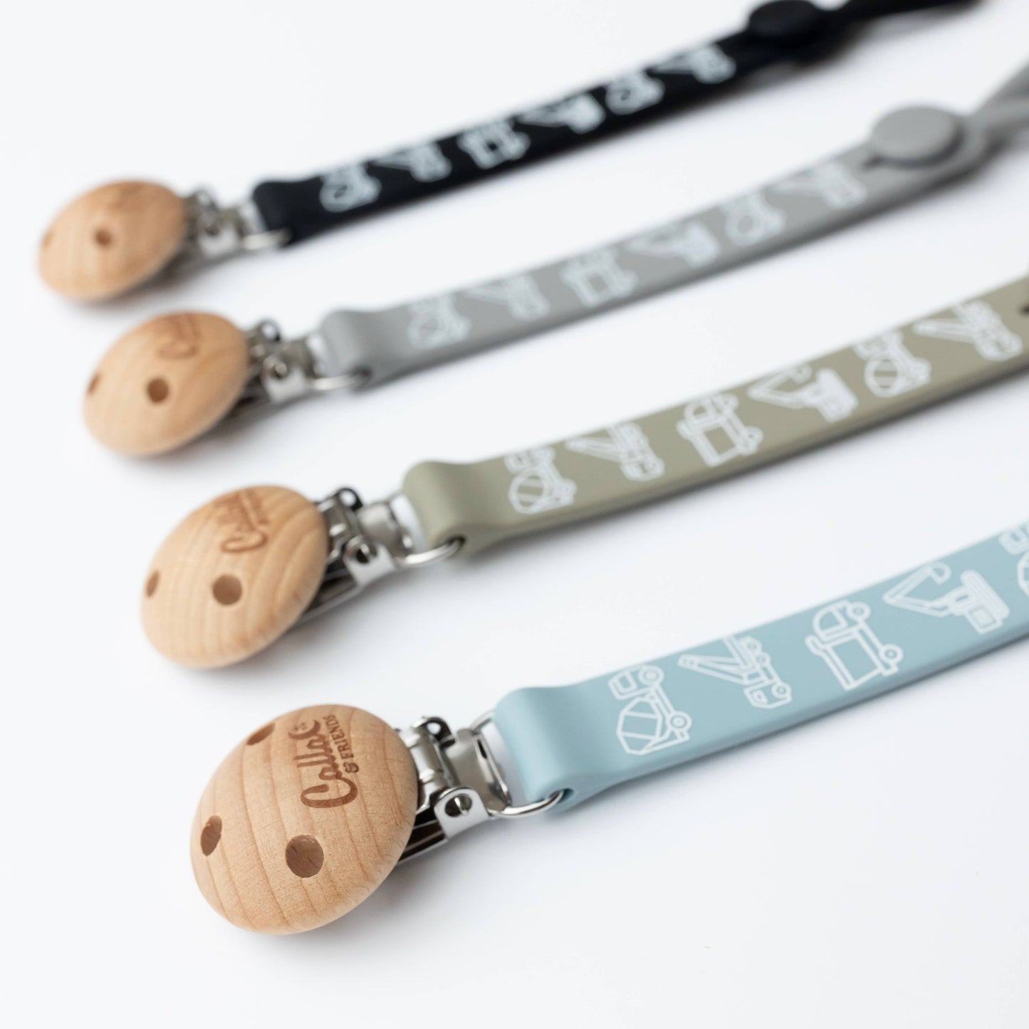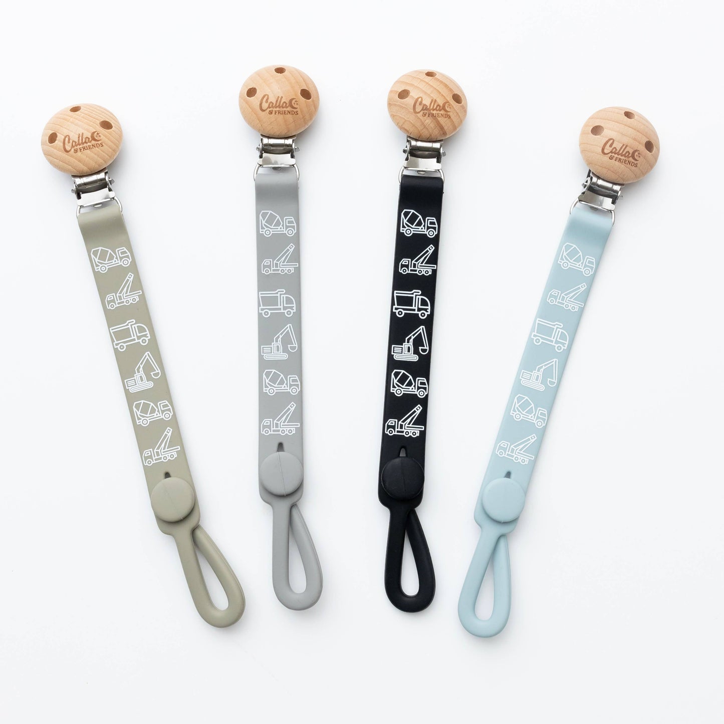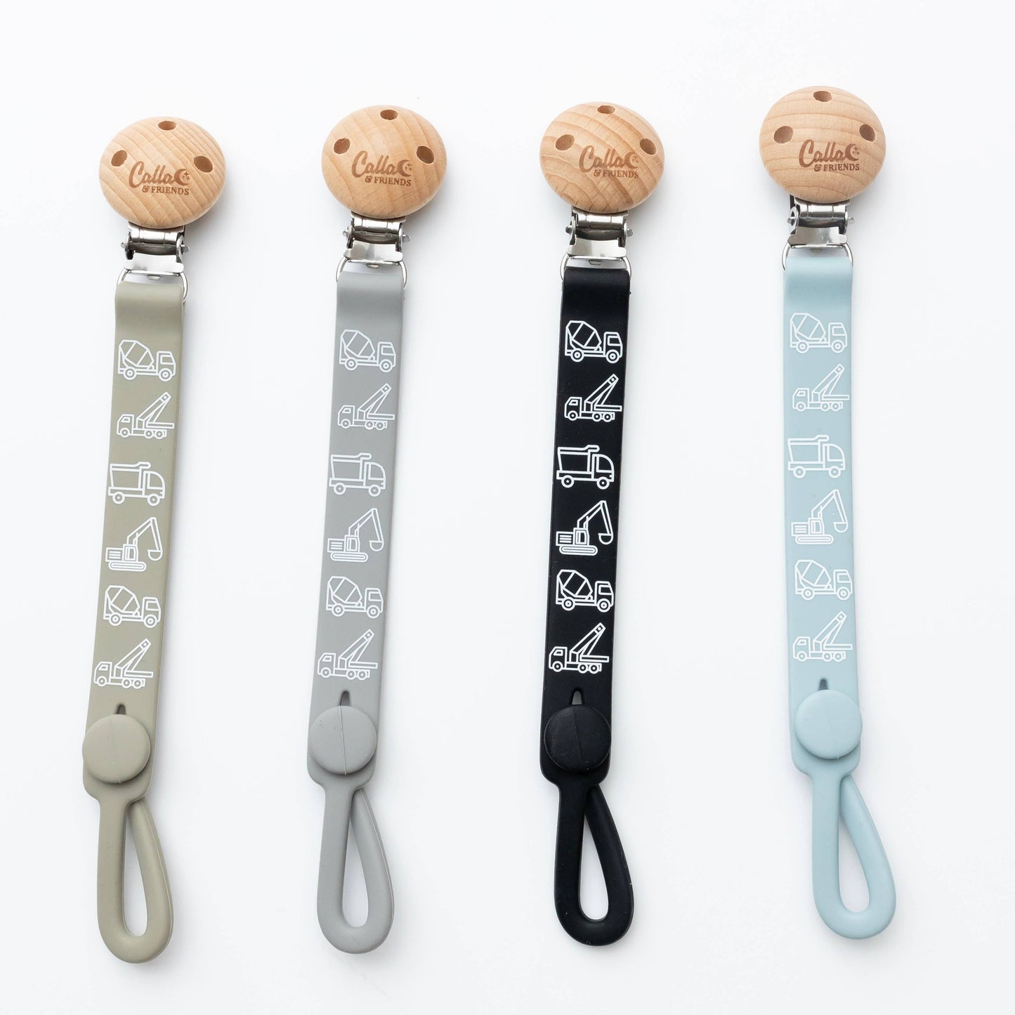 The next level of Nash clips in fun prints. This one featuring our trucks & diggers print because who doesn't love trucks & diggers?! This clip combines style and functionality to keep your little one pacifiers, teethers, & toys within reach and off the ground.