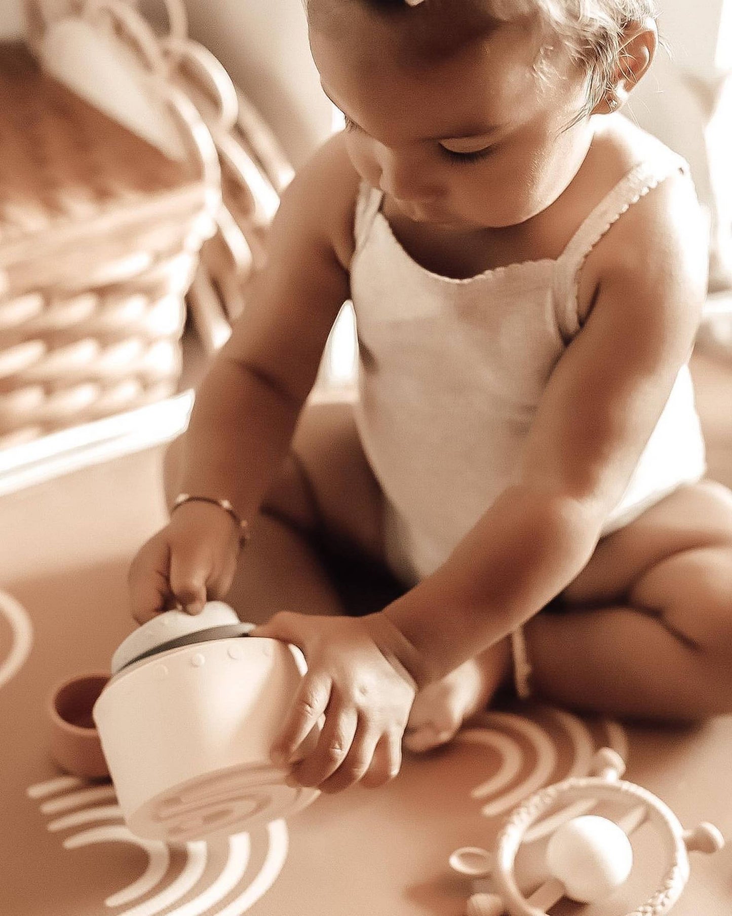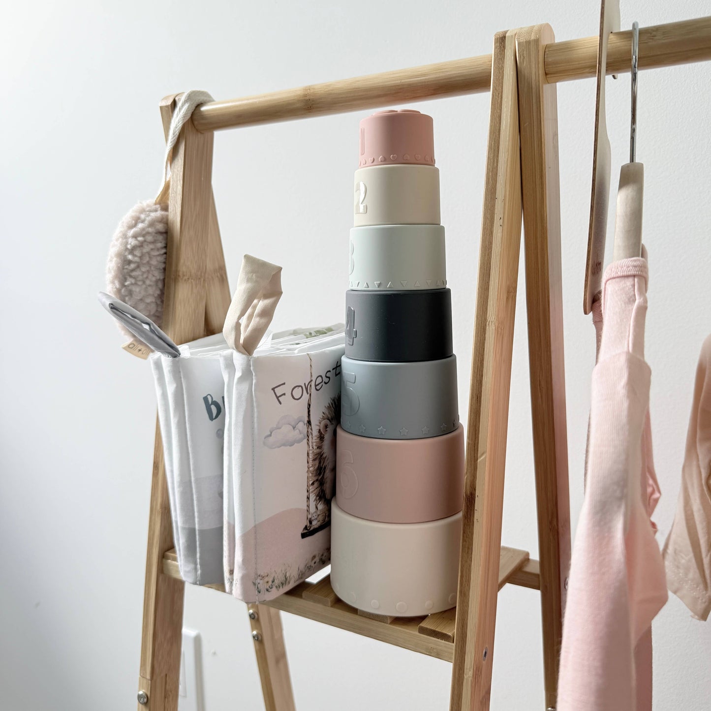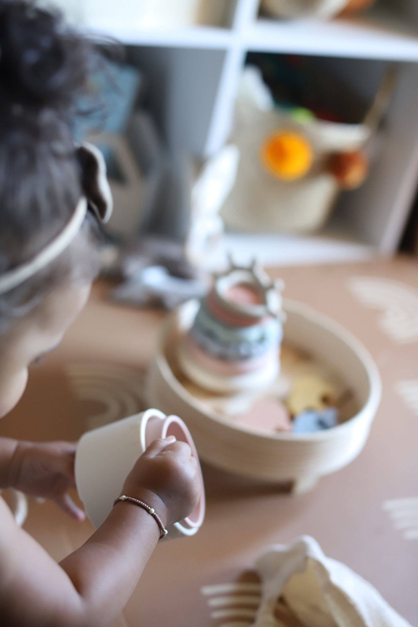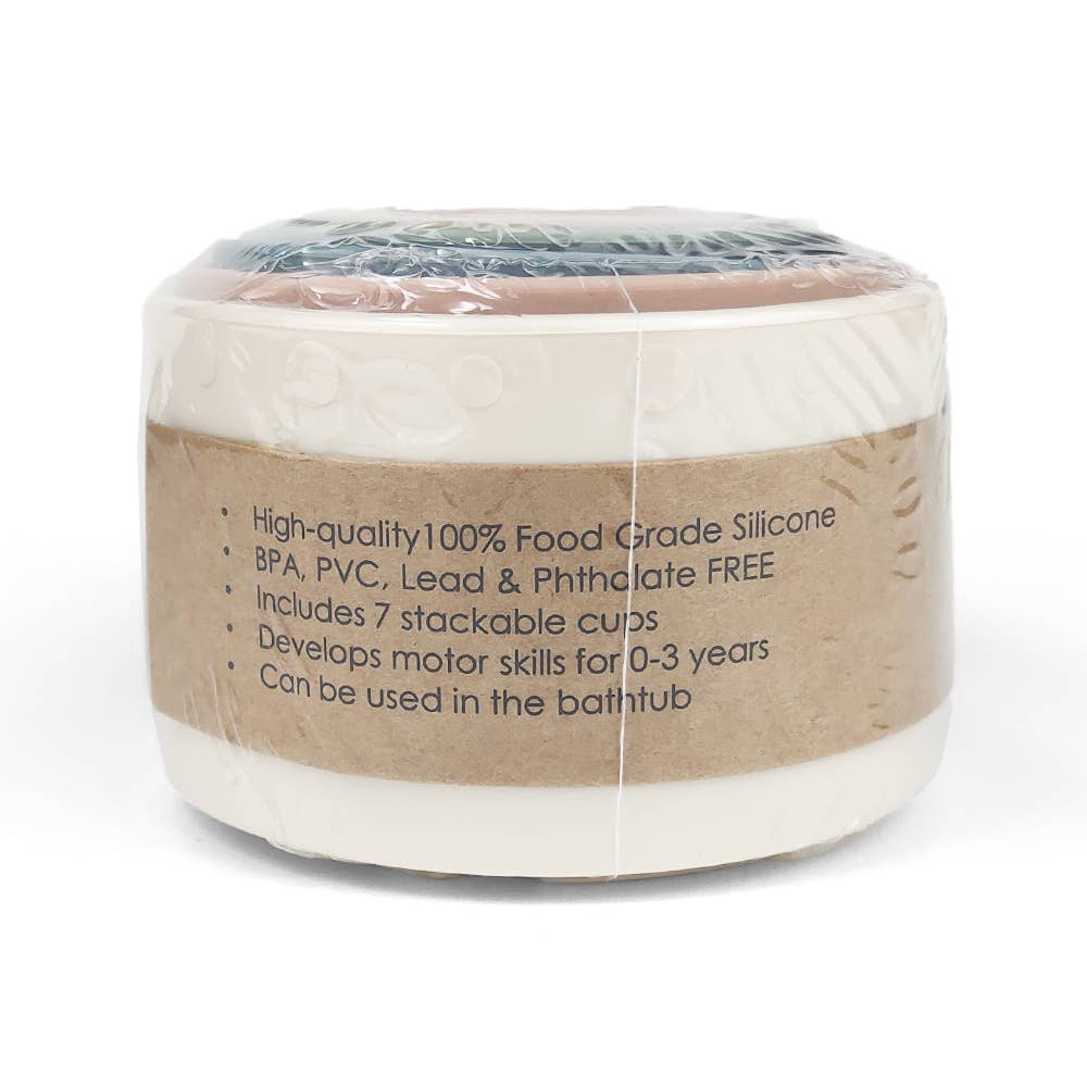 Our large silicone Stacking Cups are the perfect multifunctional toy for your baby's development. The cups encourage fine motor skills, coordination, and recognition of colors and size.