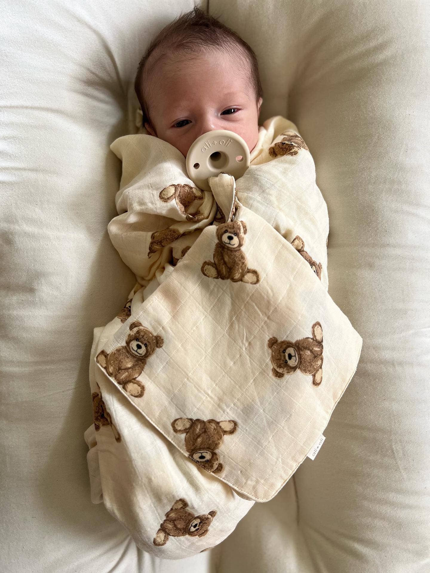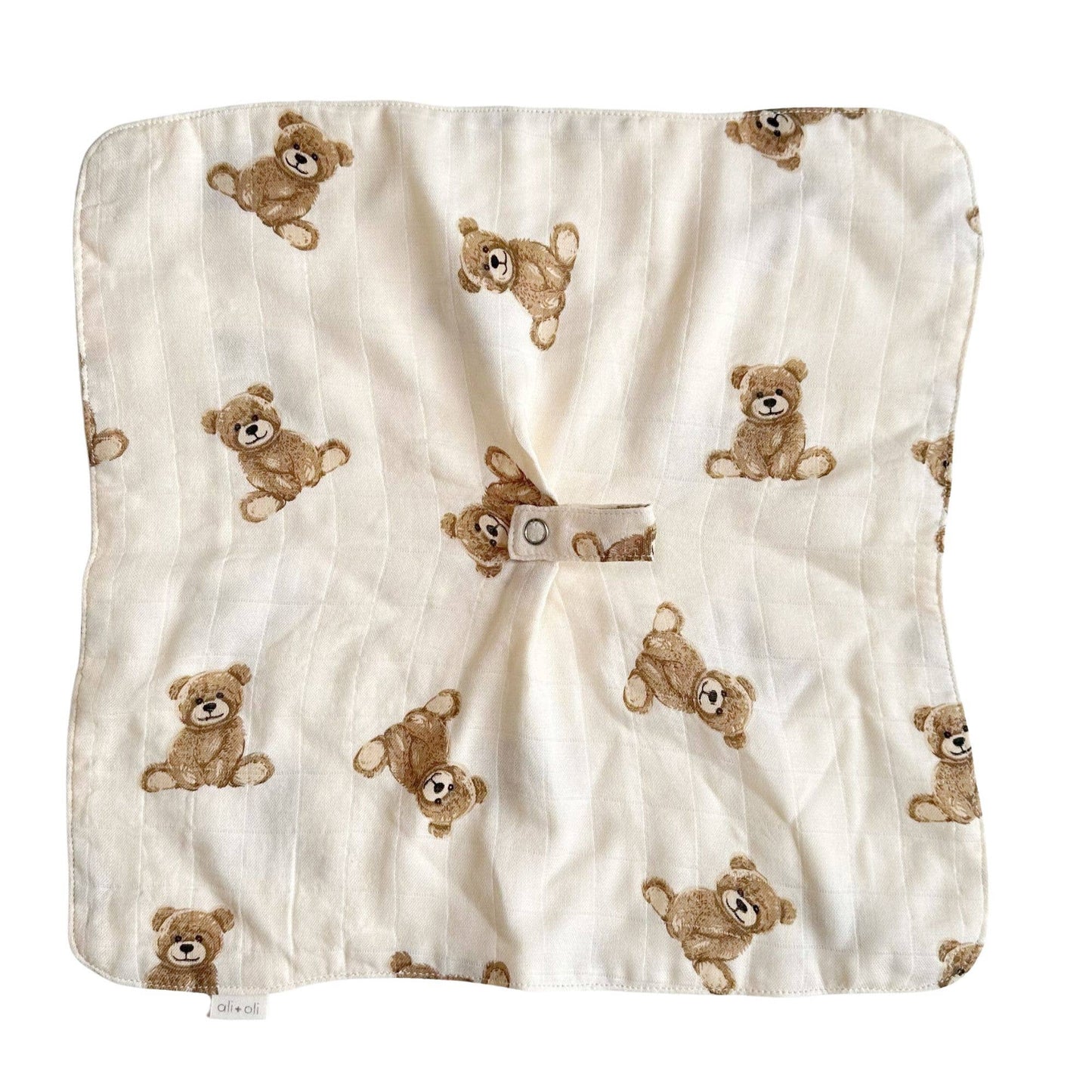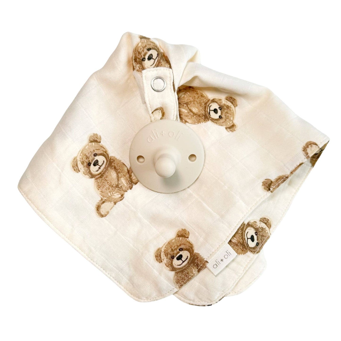 Pacifier Blanket Holder Bamboo Muslin (Teddy Bear)