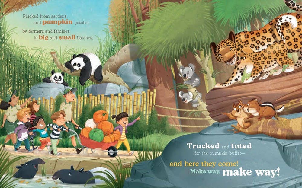 When farmers and pumpkin patch owners donate their pumpkins to the zoo, the animals chomp, chew, play, and give hearty hoorays for their favorite squishy squash! Grab a pumpkin and follow along as this lighthearted, lyrical zoo book for preschoolers and elementary-age kids from bestselling novelist Susan Meissner celebrates the fall season in the most entertaining way.