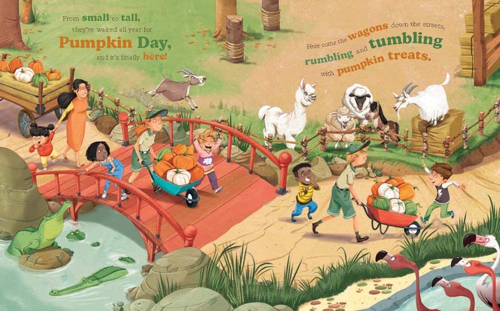 With lively artwork from illustrator Pablo Pino, Pumpkin Day at the Zoo