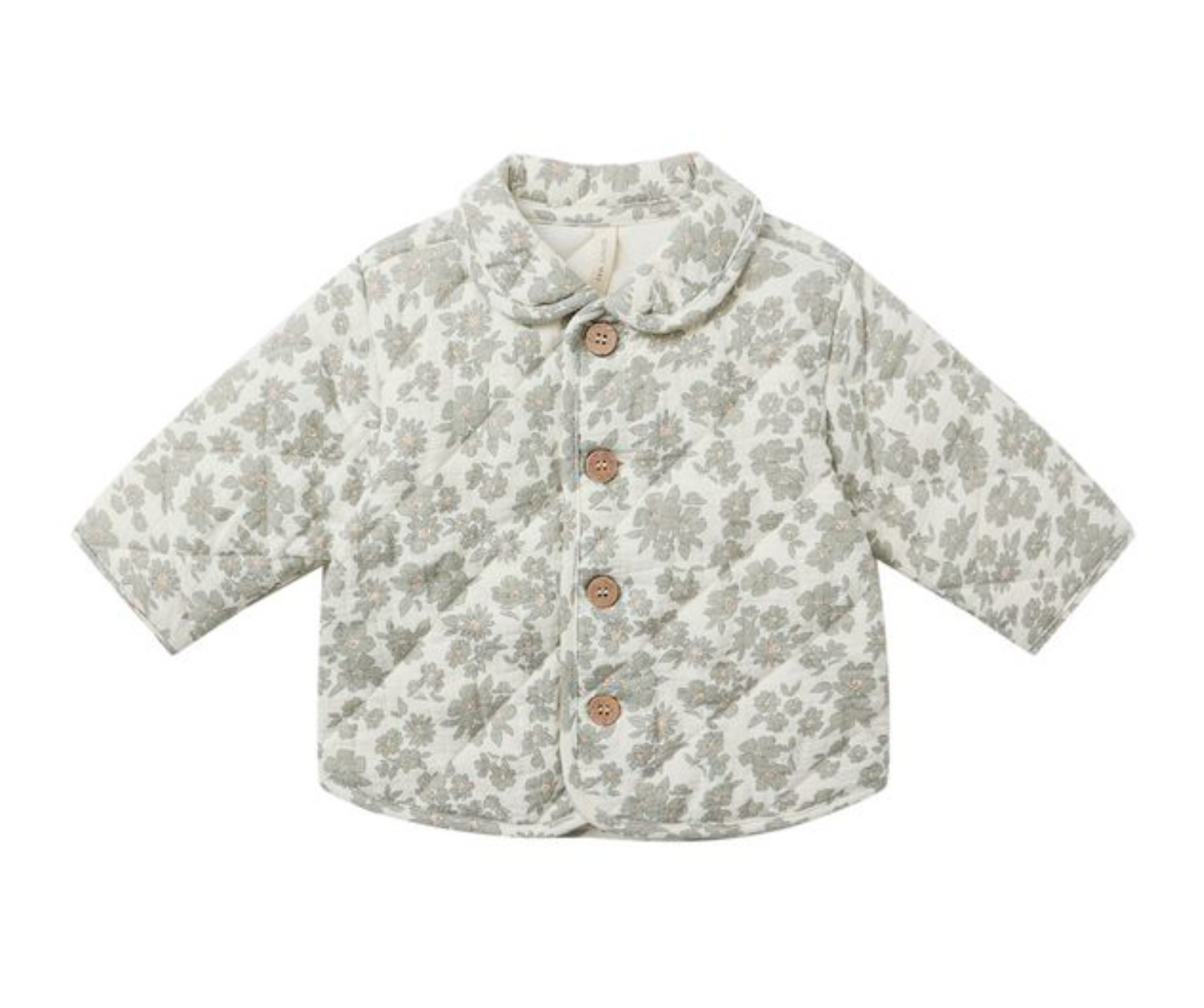 | Darling quilted jacket with a sweet Peter Pan collar and coconut buttons down the front, designed to keep your little gal warm and stylish. Featuring our 'green floral' print on our 'ivory' hue. Care: Machine wash cold. Lay flat to dry. Shell/Lining: Made of 100% organic cotton. Padding: Made of 100% polyester. |